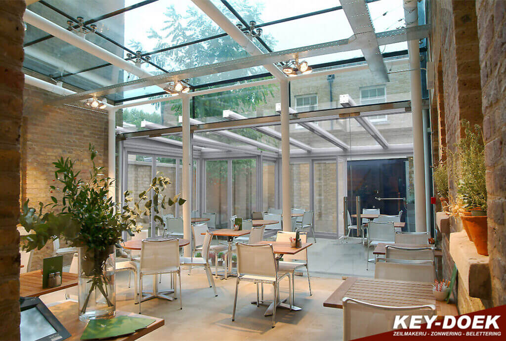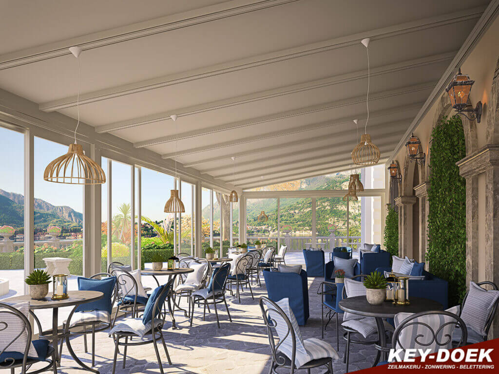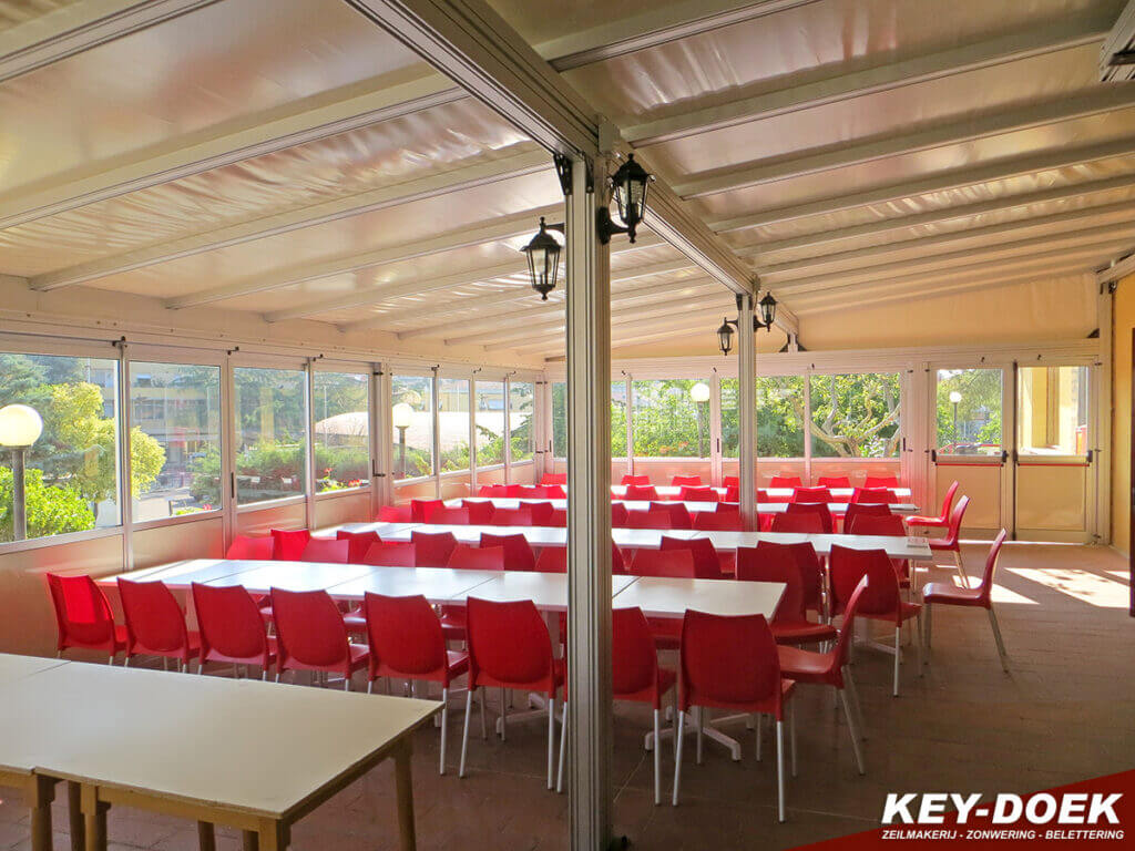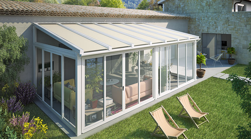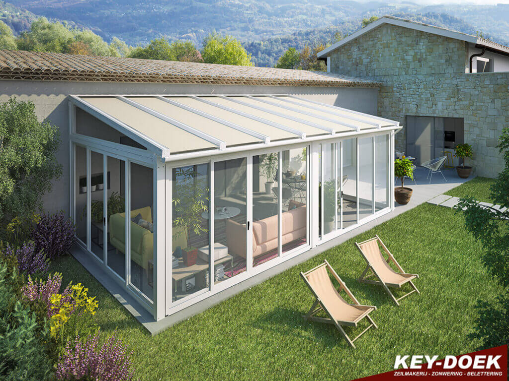 Het dak van de 3Facile veranda bestaat uit PVC-doekinserts, waarbij gebruik wordt gemaakt van Precontraint PVC van Ferrari, de toonaangevende fabrikant van structurele doeken voor spanconstructies. - Voetopties
