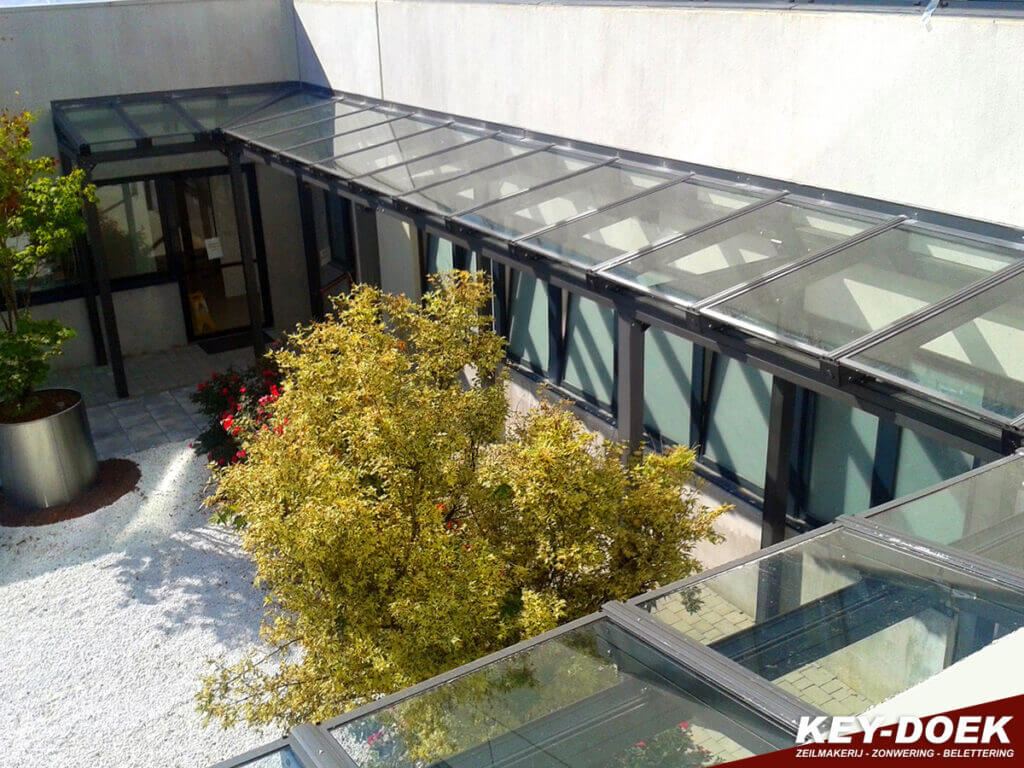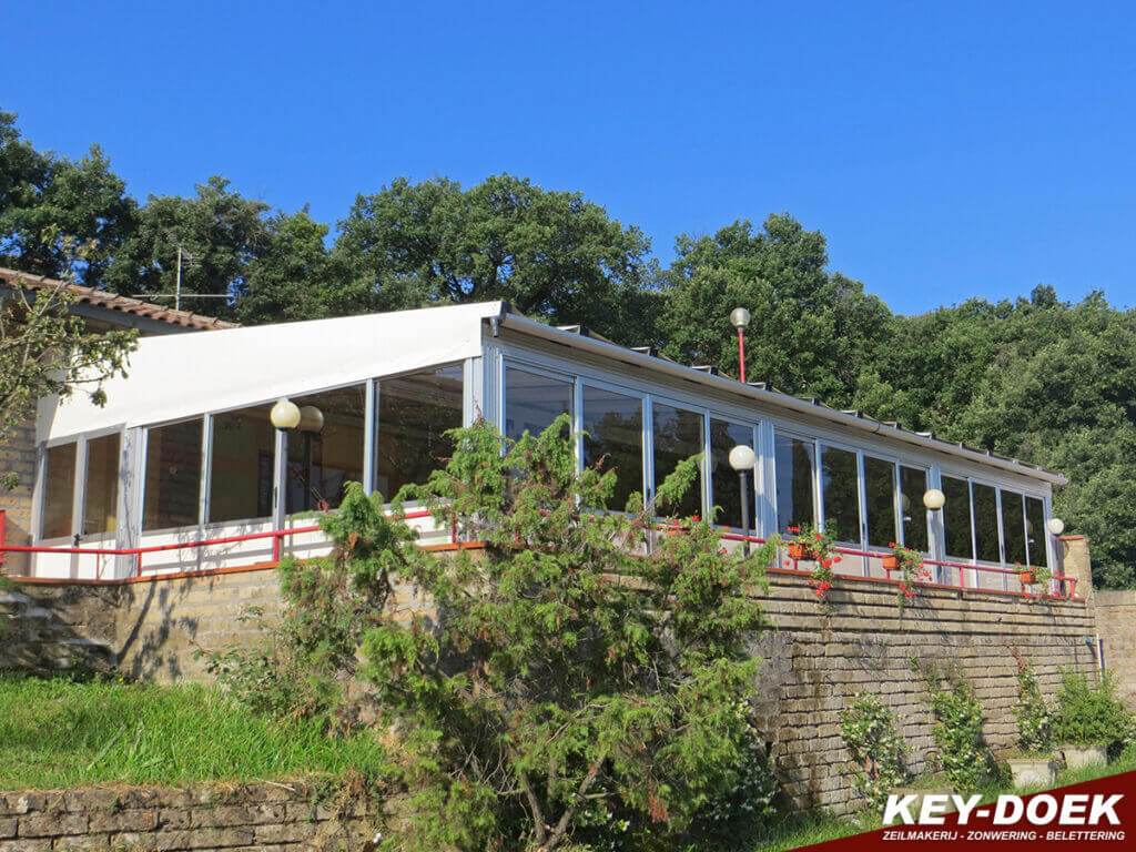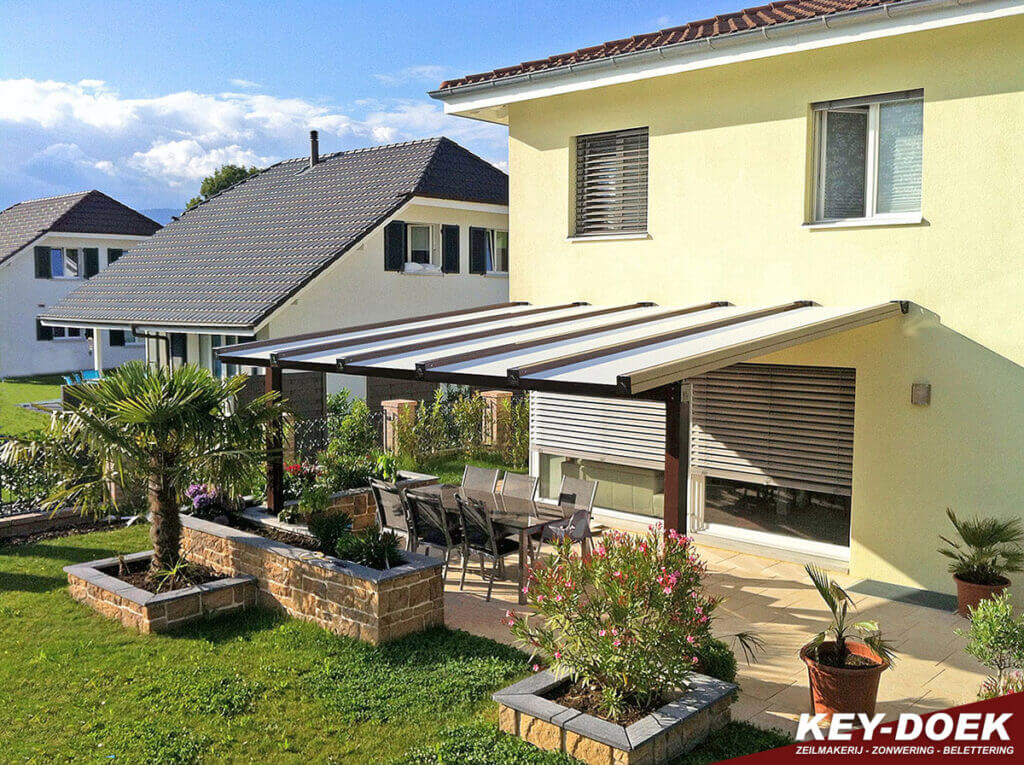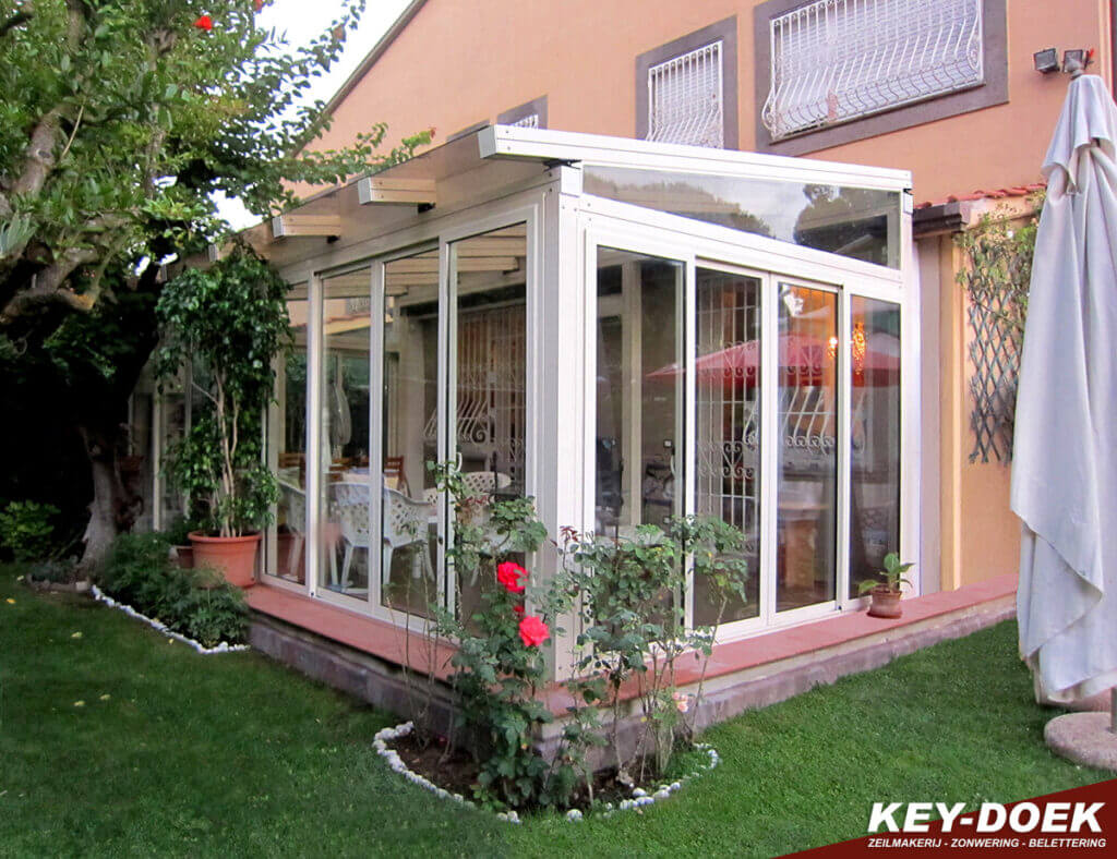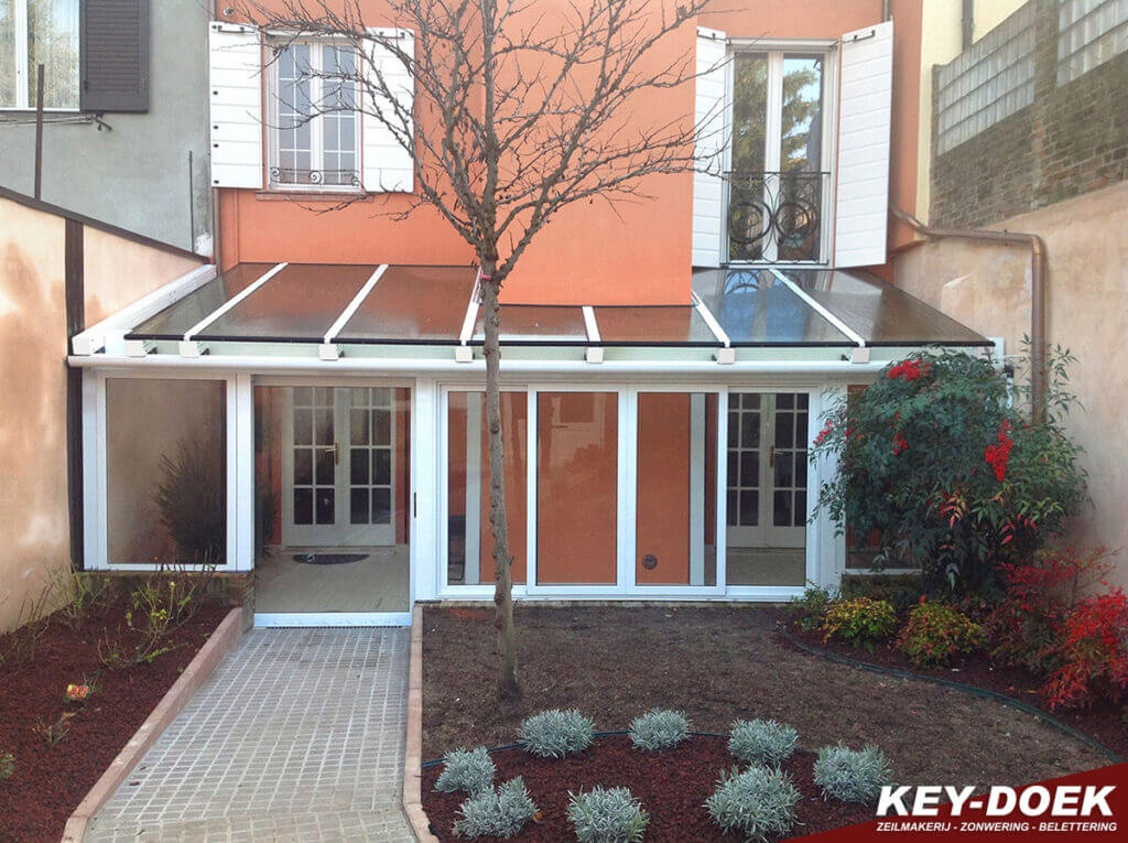 De veranda is vervaardigd uit aluminium profielen en stalen componenten die zijn gegalvaniseerd en afgewerkt met een polyester poedercoating, wat zorgt voor een lange levensduur en weerbestendigheid. - Dakbedekking
