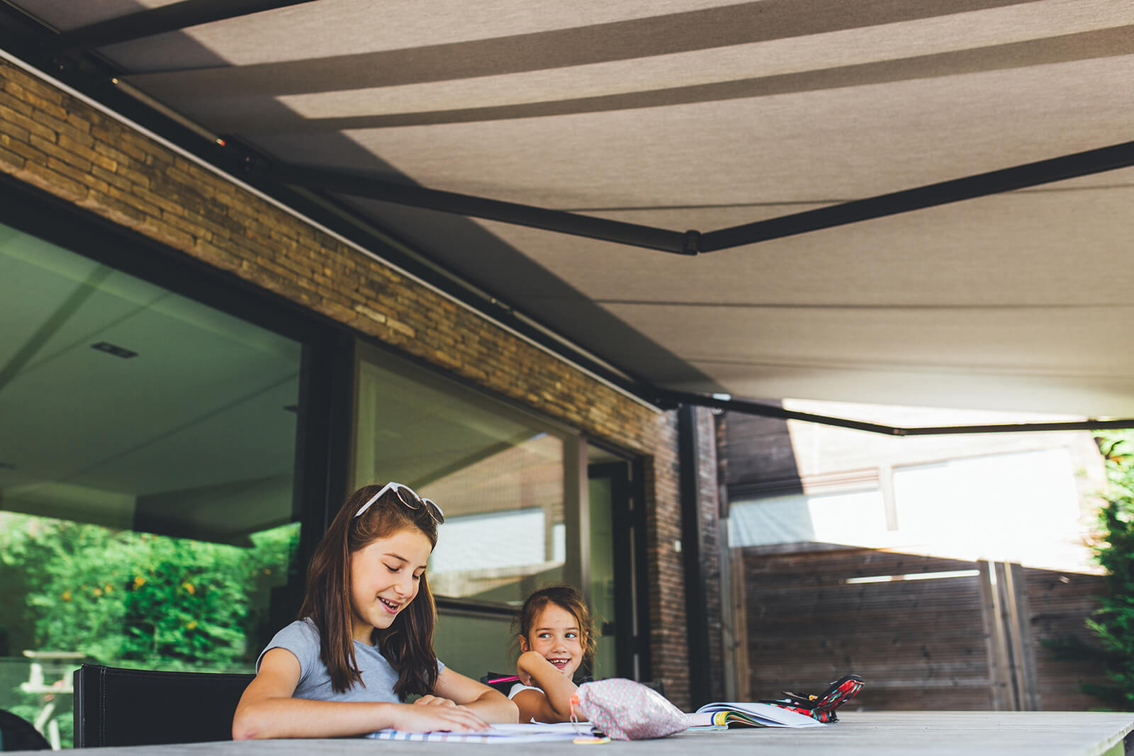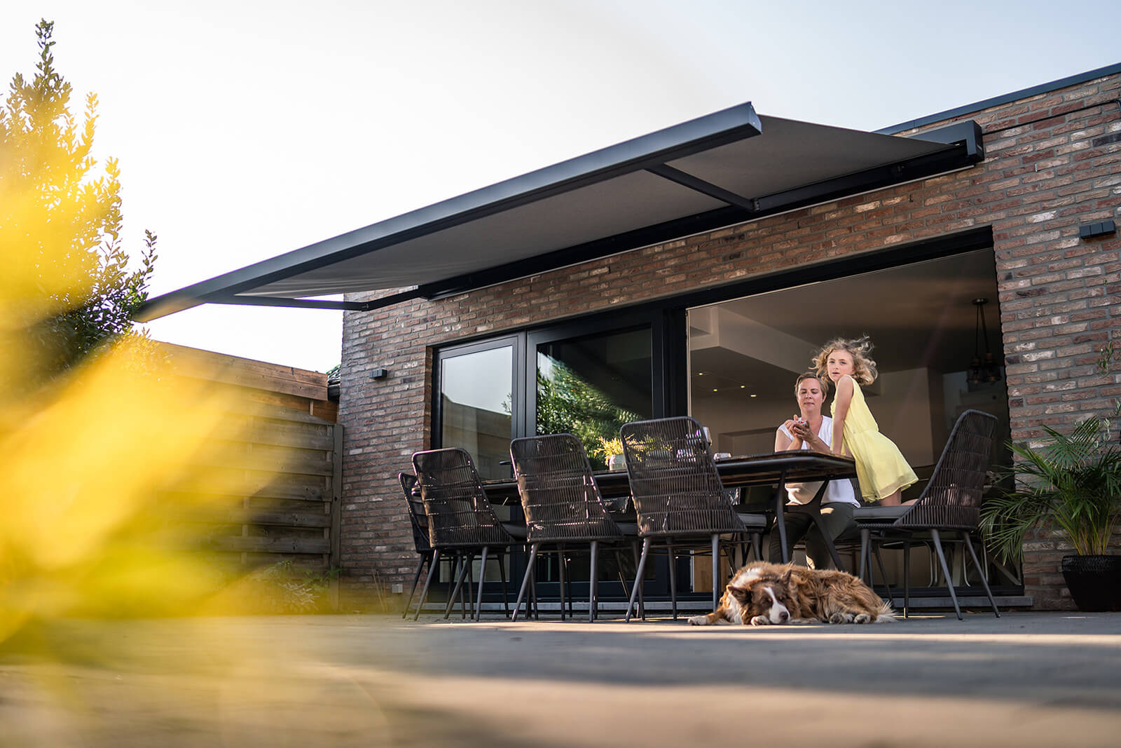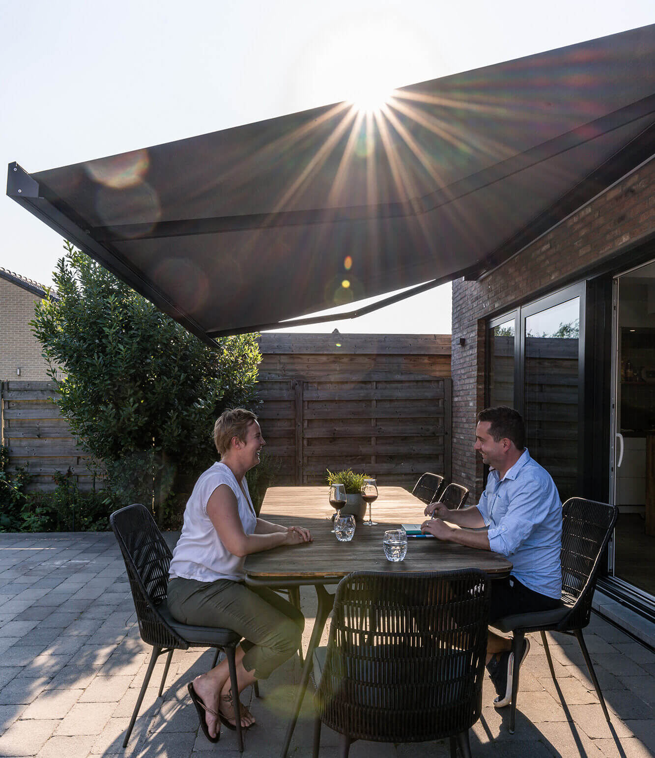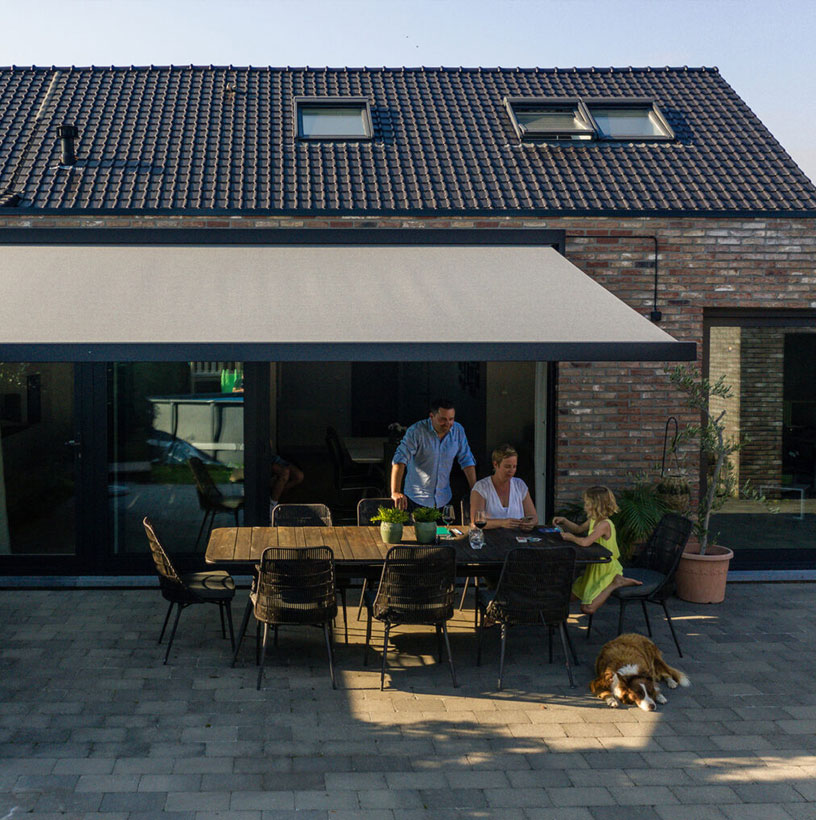 3. Via Somfy Tahoma kun je met één instructie op je smartphone eenvoudig de positie van je zonneluifel regelen, waar je ook bent.