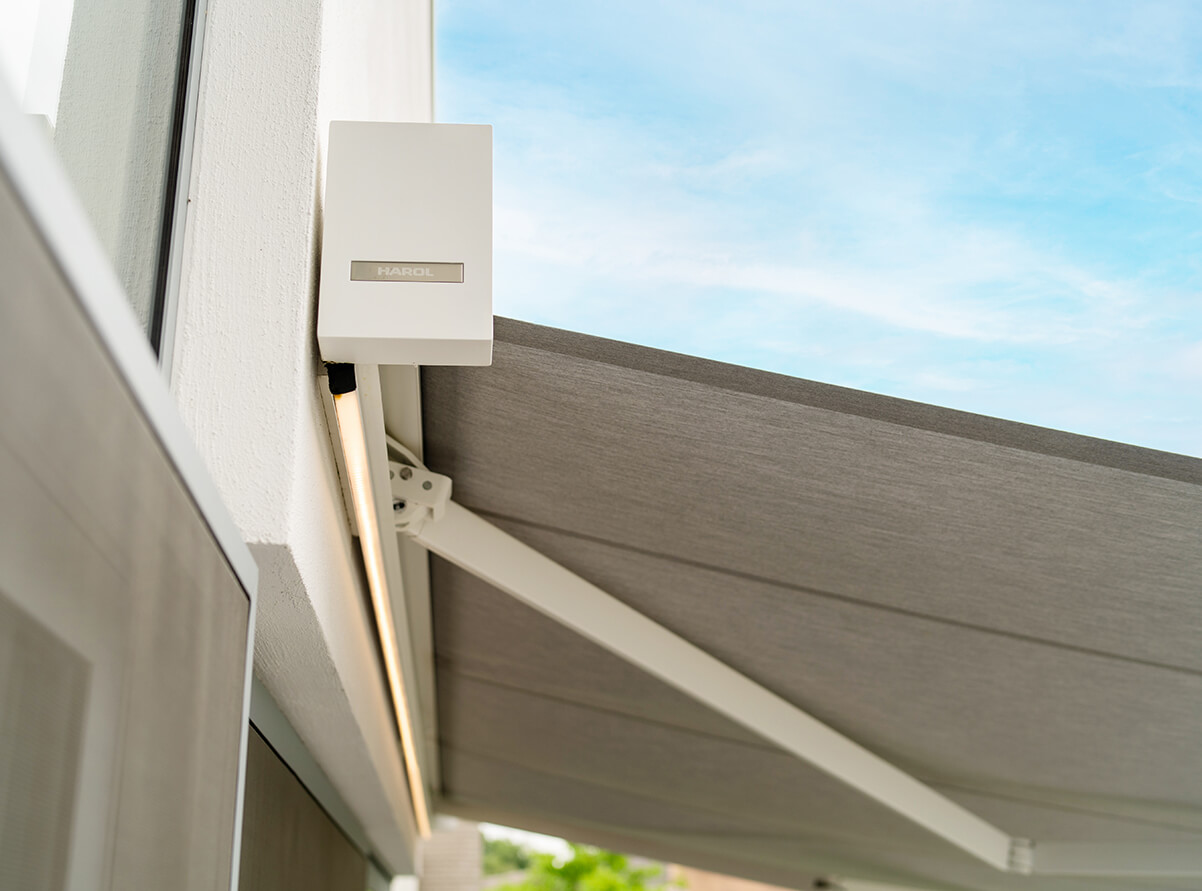 Een zon- en windsensor voor een zonnescherm zorgt ervoor dat het scherm automatisch reageert op de zon en wind, waardoor je altijd comfortabel en beschermd bent.
