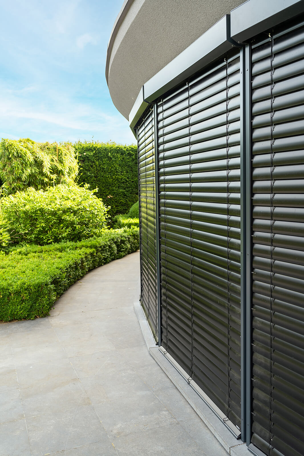 De strakke, rechthoekige kast van de innovatieve buitenjaloezie BZ700 bestaat uit één geheel en versmelt mooi met de gevel van de woning. Op en top elegantie!