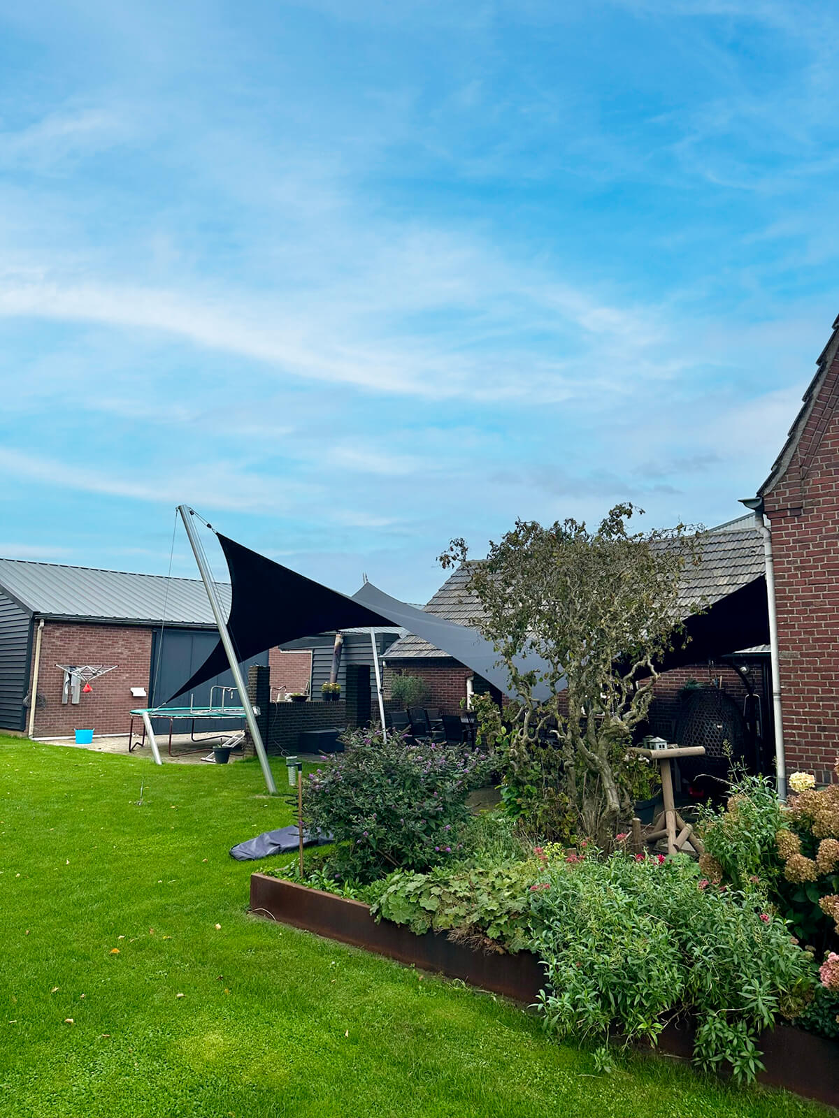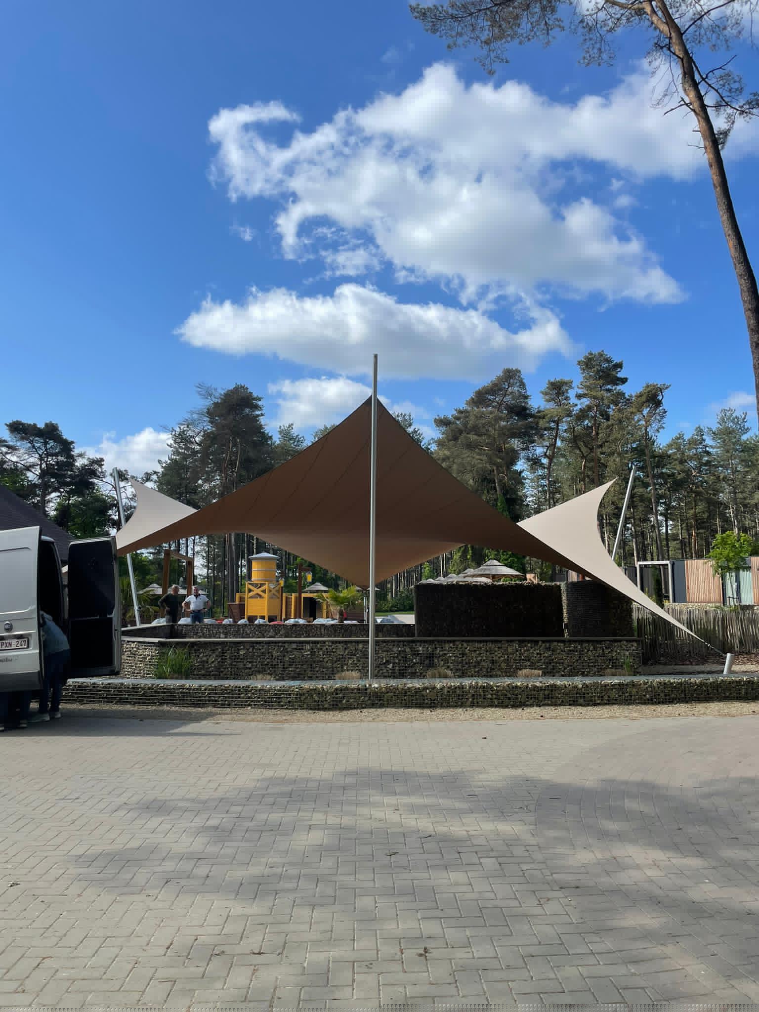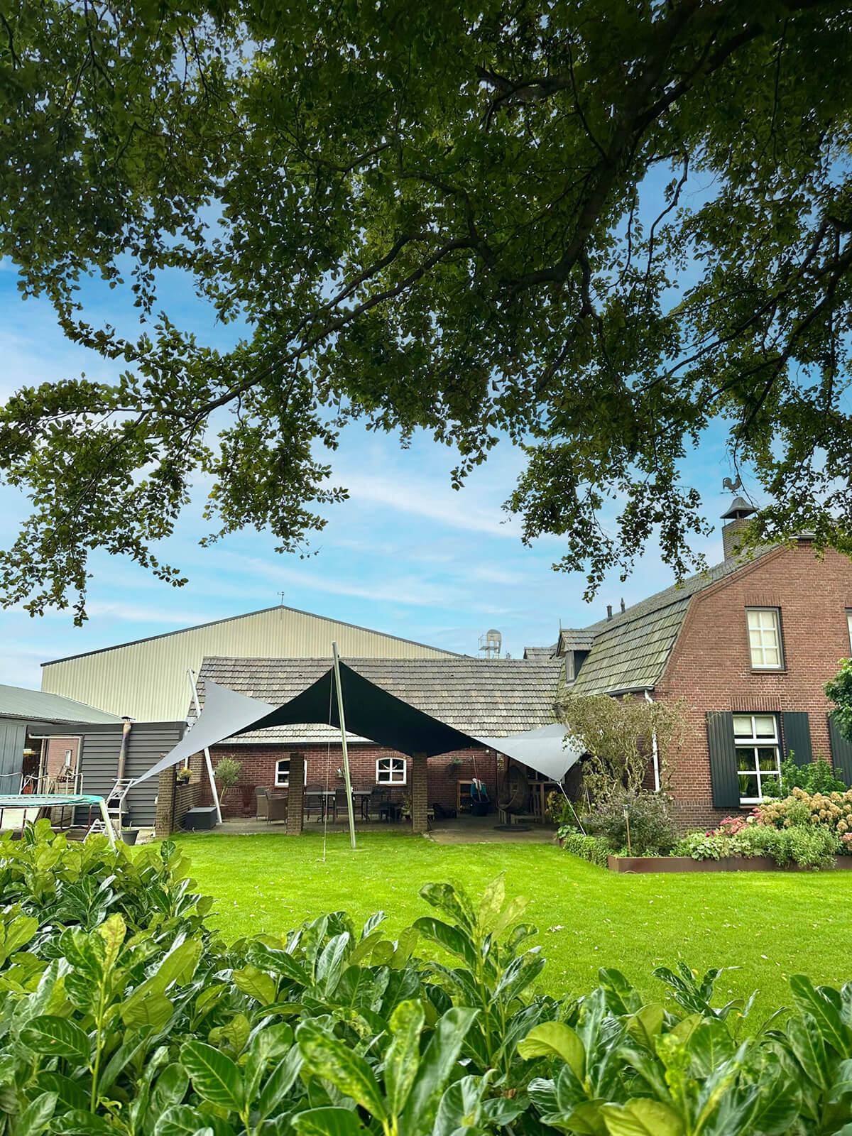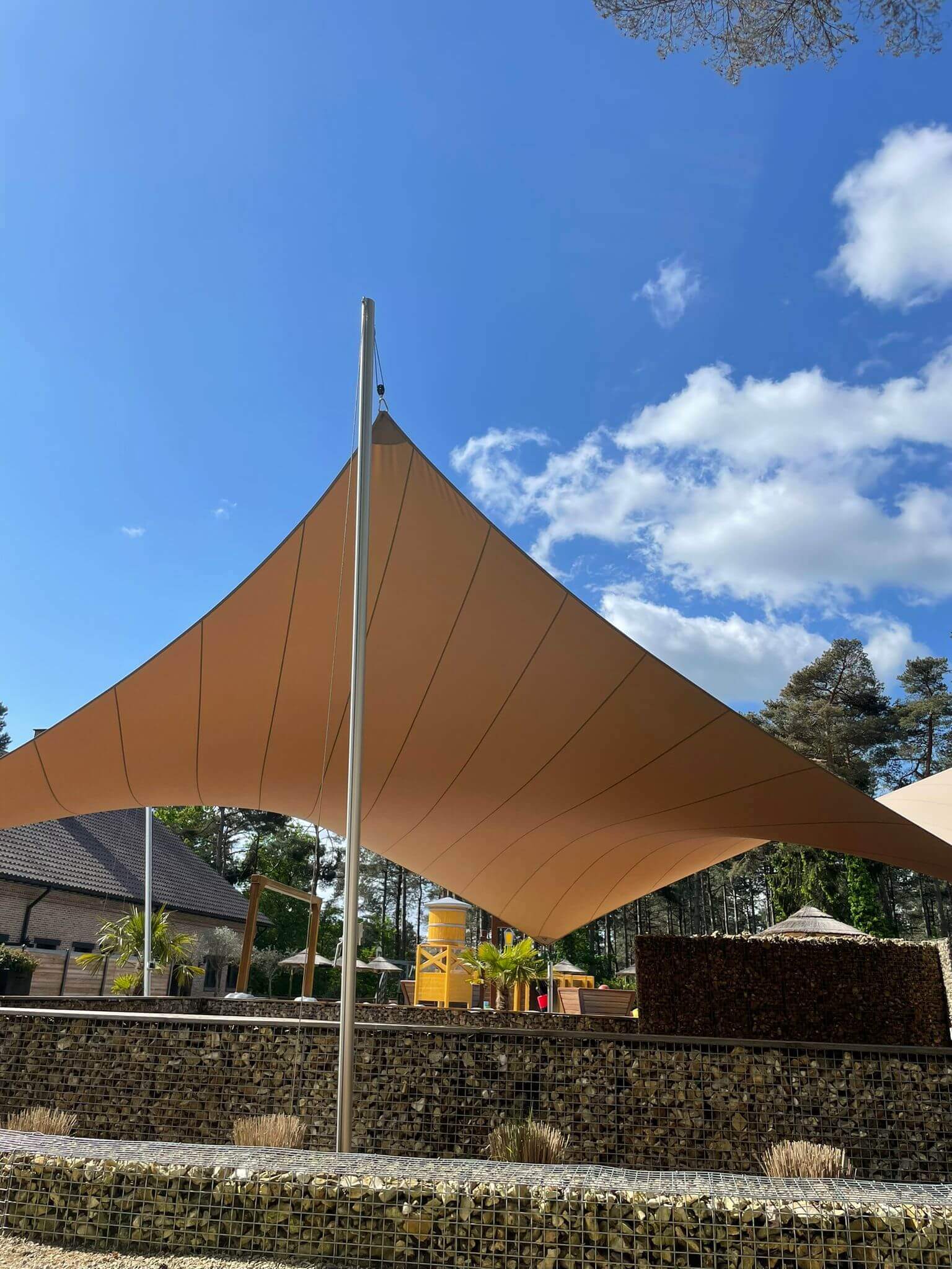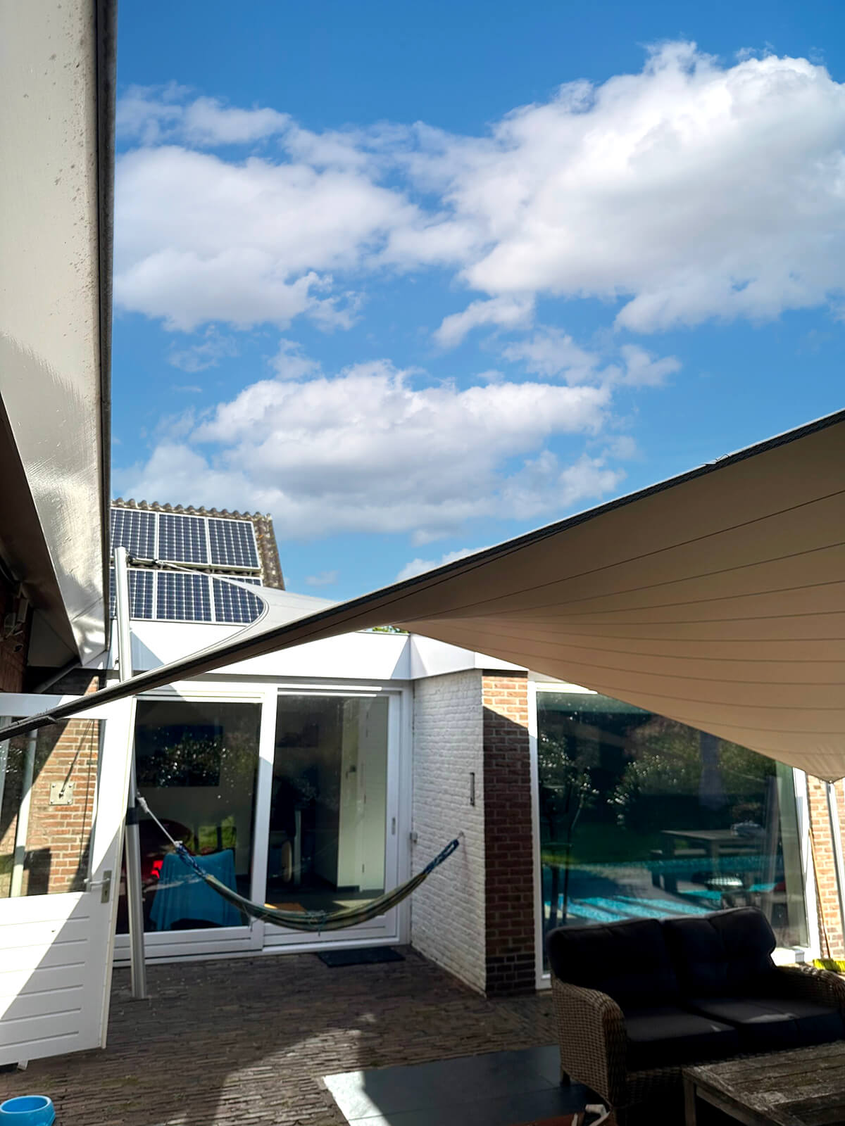 Dankzij het hoogteverschil tussen de bevestigingen blijven uw zichtlijnen uitstekend bewaard. Met behulp van een 3D-schets bespreken we samen met u welke zichtlijnen u het liefst behoudt. Bovendien kunnen we met een schaduwanalyse exact laten zien hoe het schaduwpatroon gedurende de dag verandert. Doordat er nooit masten in het midden van de overkapping worden geplaatst, blijft een panoramisch uitzicht altijd behouden.