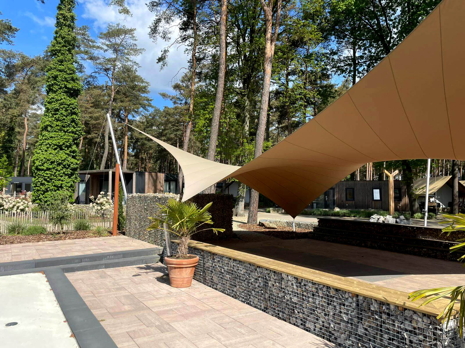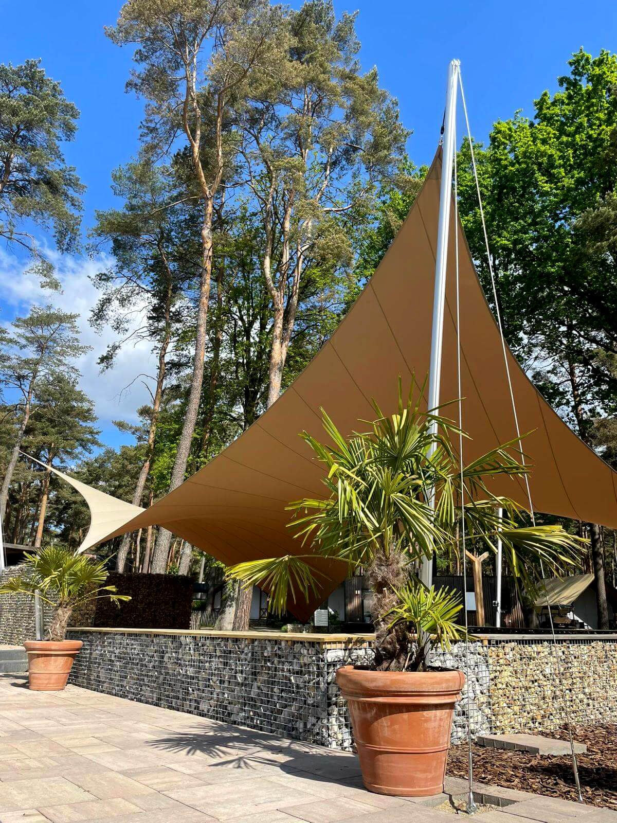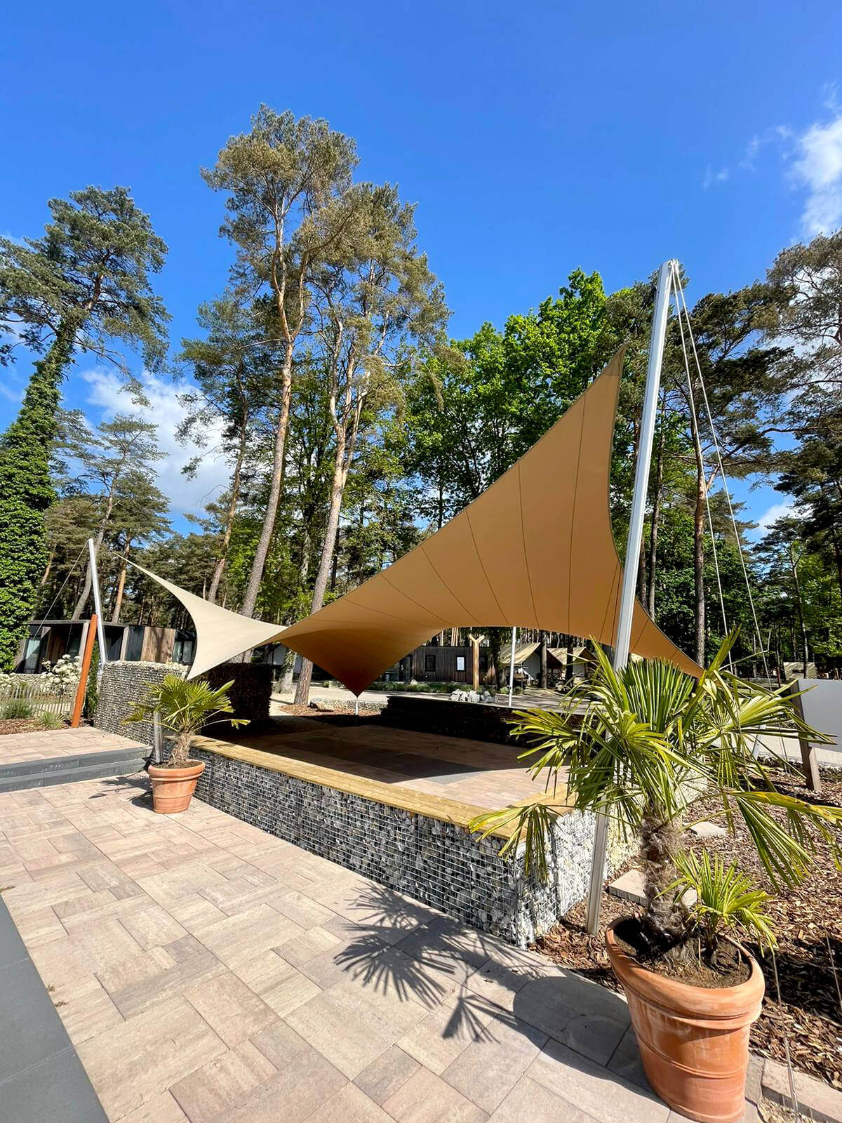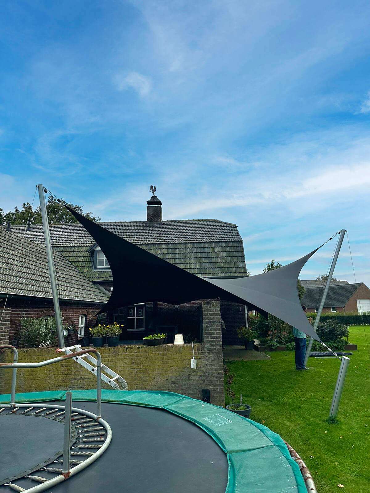 Dankzij het hoogteverschil tussen de bevestigingen blijven uw zichtlijnen uitstekend bewaard. Met behulp van een 3D-schets bespreken we samen met u welke zichtlijnen u het liefst behoudt. Bovendien kunnen we met een schaduwanalyse exact laten zien hoe het schaduwpatroon gedurende de dag verandert. Doordat er nooit masten in het midden van de overkapping worden geplaatst, blijft een panoramisch uitzicht altijd behouden.