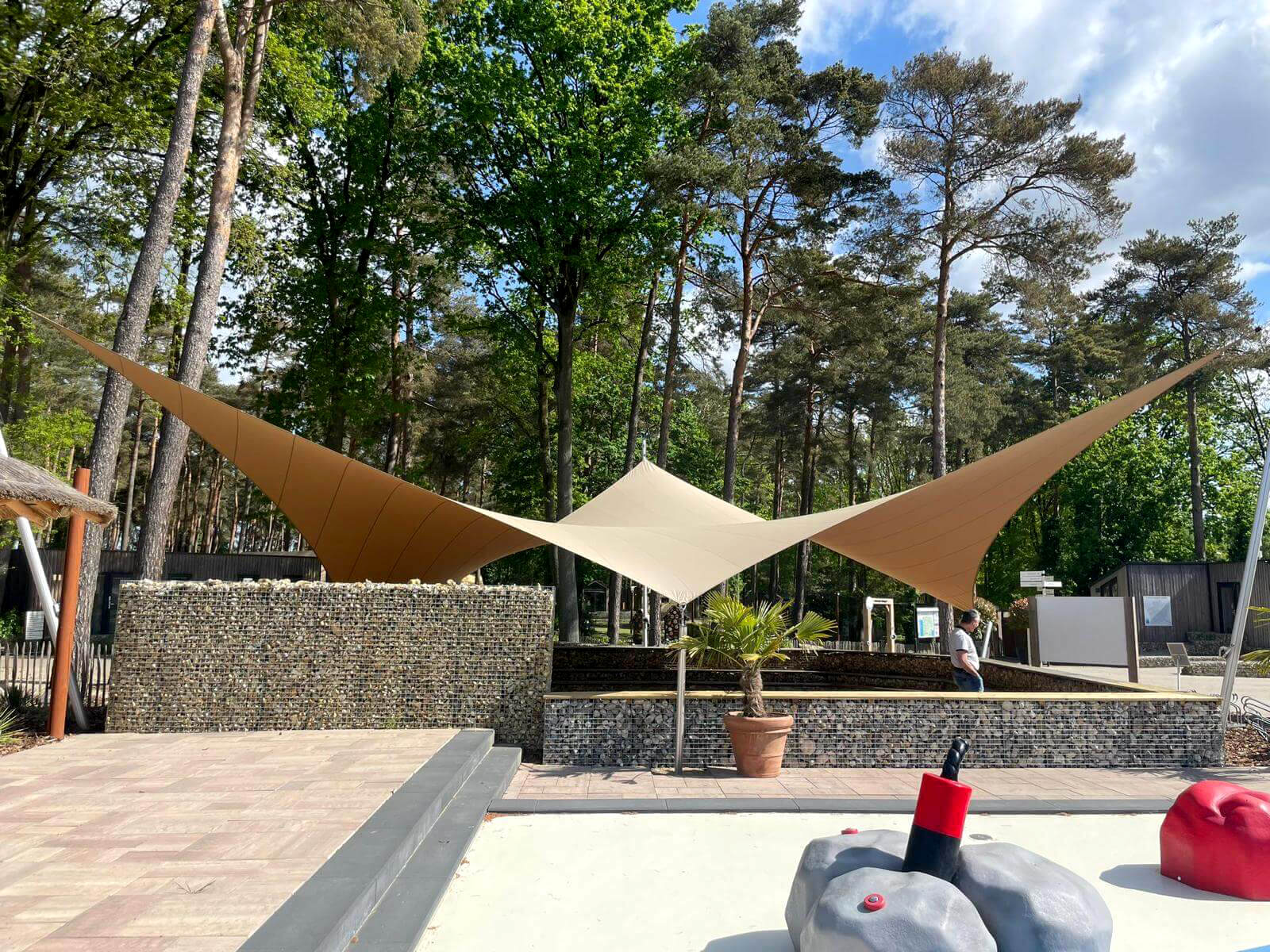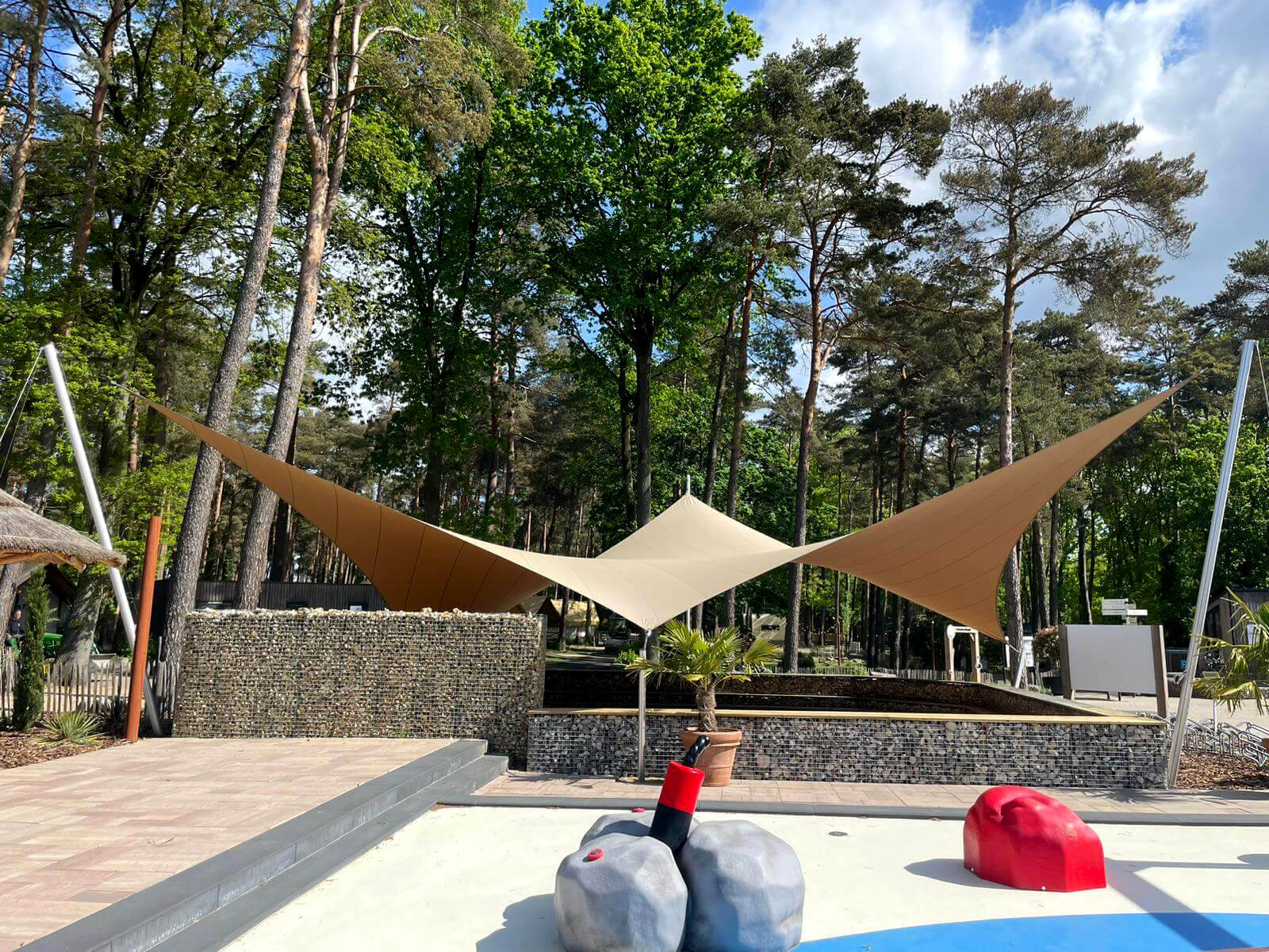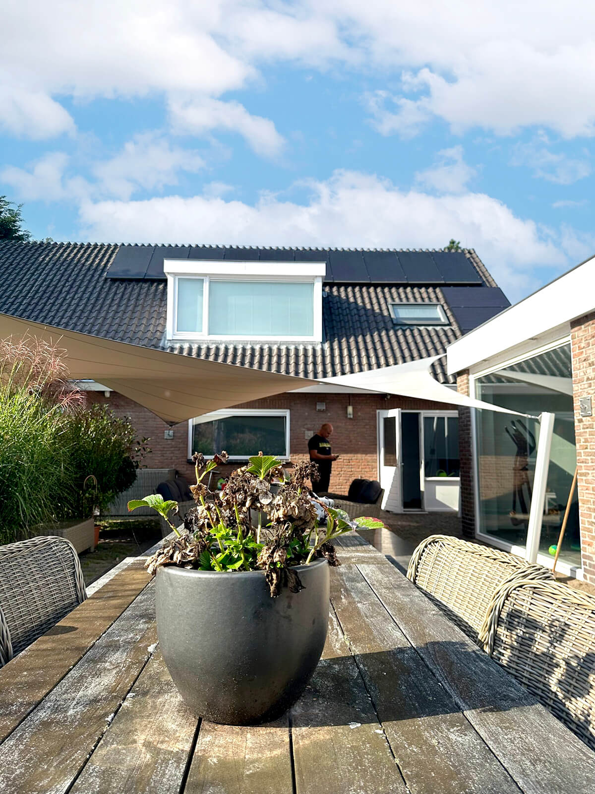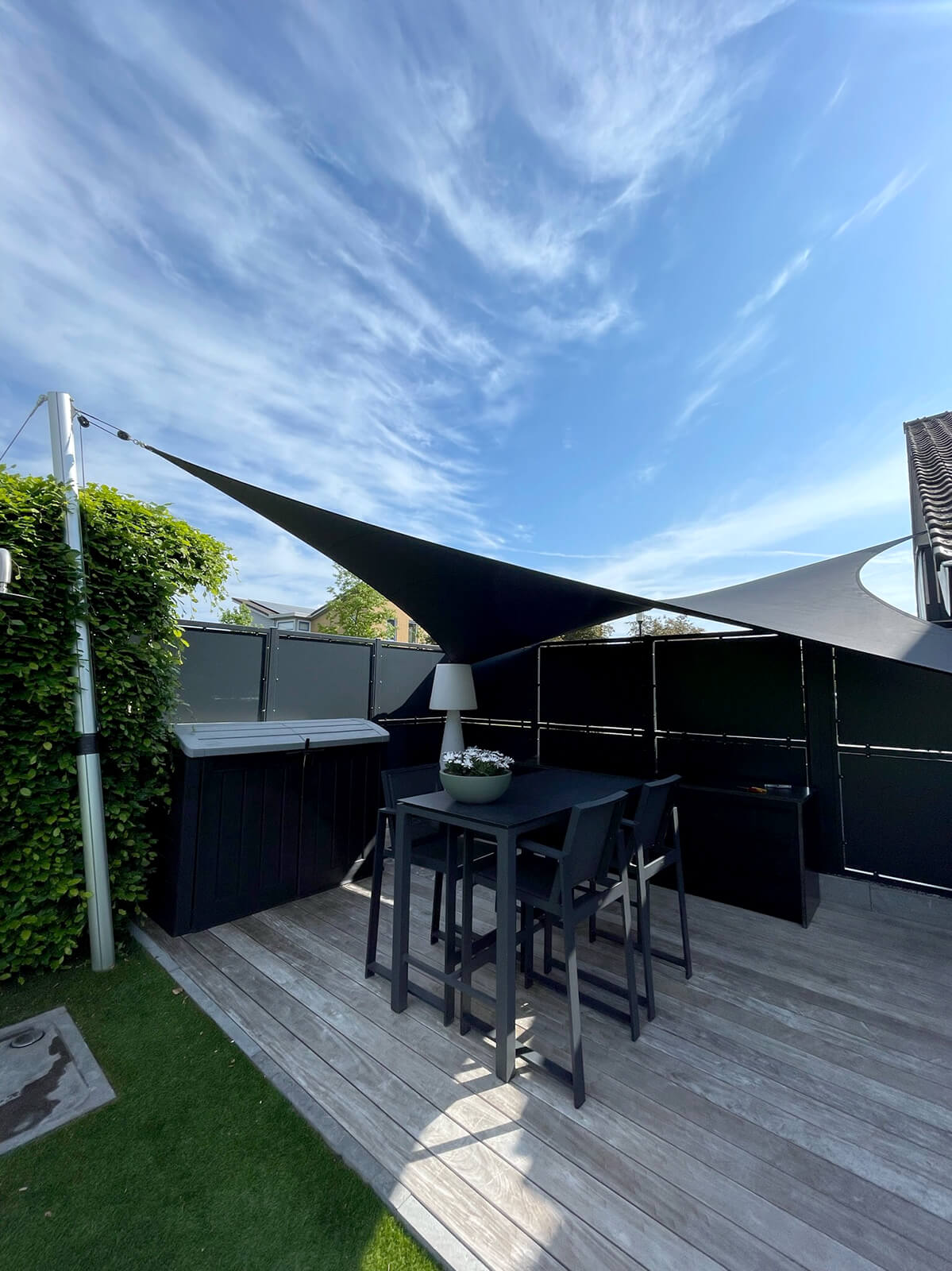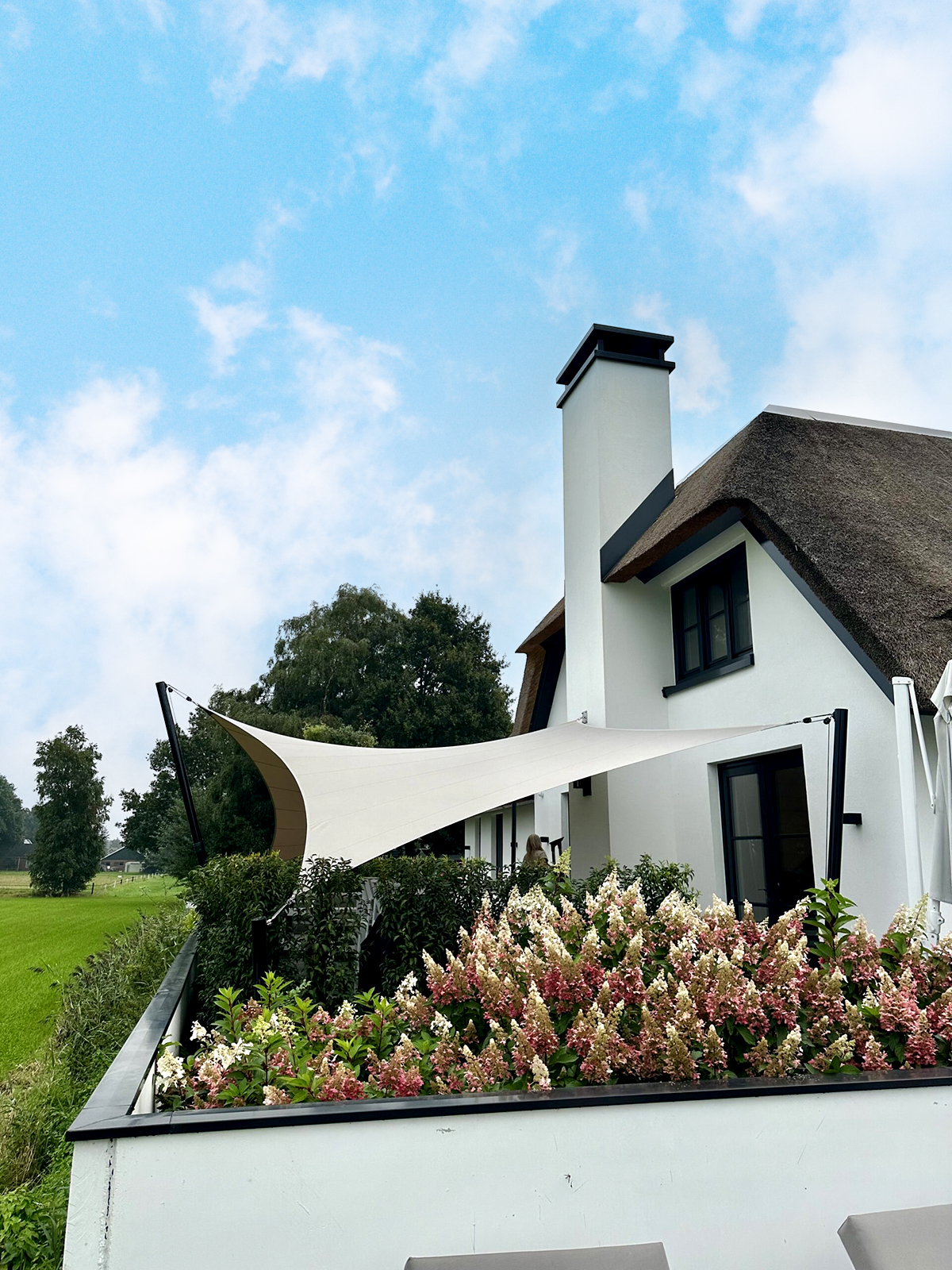Dankzij het hoogteverschil tussen de bevestigingen blijven uw zichtlijnen uitstekend bewaard. Met behulp van een 3D-schets bespreken we samen met u welke zichtlijnen u het liefst behoudt. Bovendien kunnen we met een schaduwanalyse exact laten zien hoe het schaduwpatroon gedurende de dag verandert. Doordat er nooit masten in het midden van de overkapping worden geplaatst, blijft een panoramisch uitzicht altijd behouden.