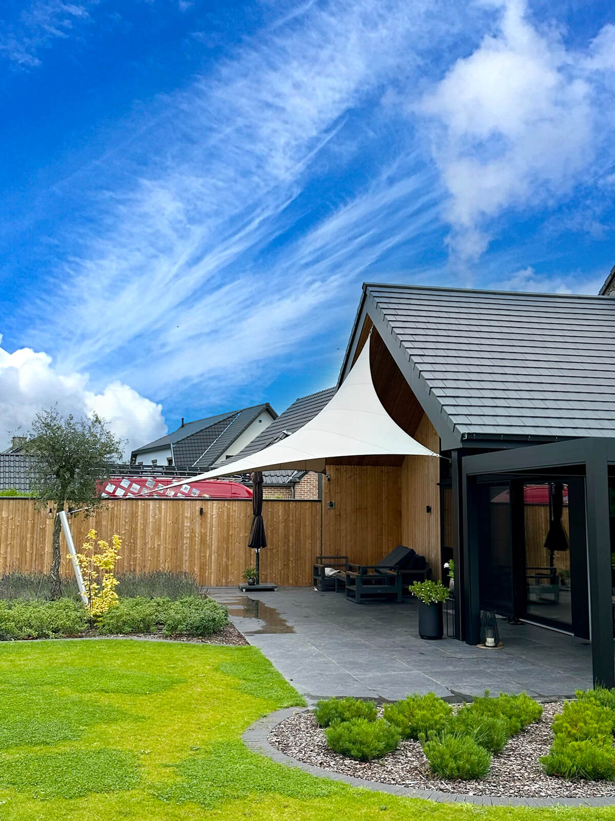 Ervaar de luxe van textielarchitectuur aan huis met onze indrukwekkende Manta Roofs. Deze optimaal gespannen terrasoverkappingen, met hun kenmerkende dubbele kromming, creëren een unieke beleving. Het gevoel van ontspanning en de sfeer die deze overkappingen oproepen, moeten persoonlijk ervaren worden. Bezoek een van onze locaties om dit zelf te ervaren en laat u adviseren over de ideale plaatsing van verlichting voor een complete beleving.