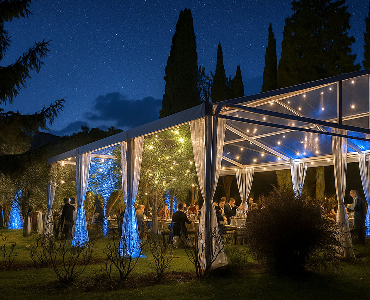 - Of je nu een grootschalig feest, een intieme bruiloft, een professionele beurs of een elegante ceremonie plant, de Coprifacile past zich aan aan jouw behoeften en tilt de sfeer van jouw evenement naar een hoger niveau.