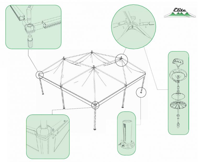 - Geschikt voor modulaire compositie met de nieuwe generatie Marqueetenten (Dynamic, Elite, Elite-in, Meeting en Meeting-in) ongeacht vorm of dimensies.
