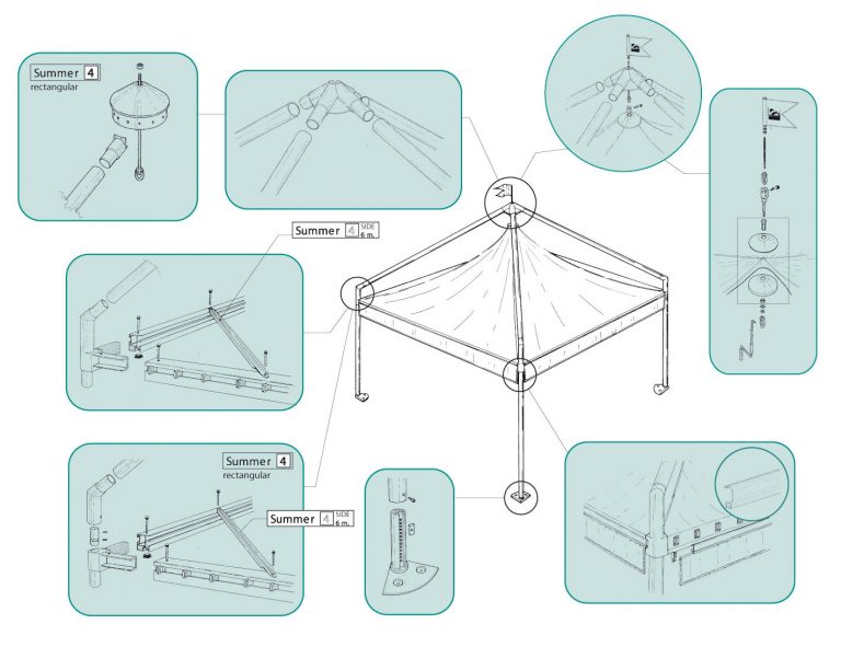 - Geschikt voor modulaire compositie met Marquee tenten van hetzelfde model.