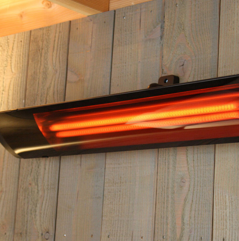 De terrasverwarmer is uitgerust met een Carbon lamp, die veel stralingswarmte produceert met verminderde lichtafgifte. Hierdoor behoudt de ruimte zijn natuurlijke kleur zonder een rode/oranje gloed. - Zwarte of witte uitvoering