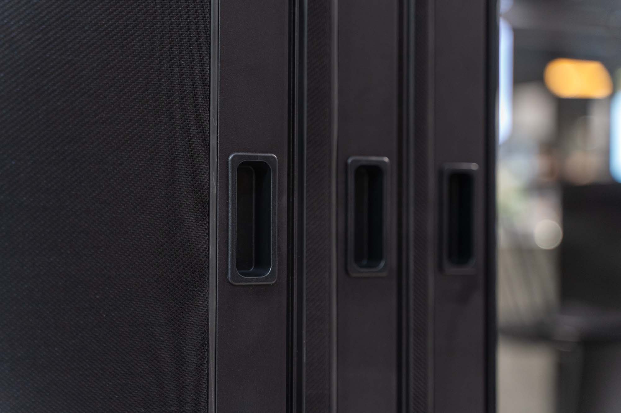 De schuifpanelen zijn gemakkelijk manueel naar links en/of rechts te verschuiven en zijn aan de verticale zijden voorzien van een zwarte, rubberen afdichting. Zo heb je steeds een mooie aansluiting op de wand en of de voetpaalprofielen. Op ieder paneel zijn er zowel links, rechts, als op de voor- en achterzijde handgrepen voorzien voor een gemakkelijke hanteerbaarheid.