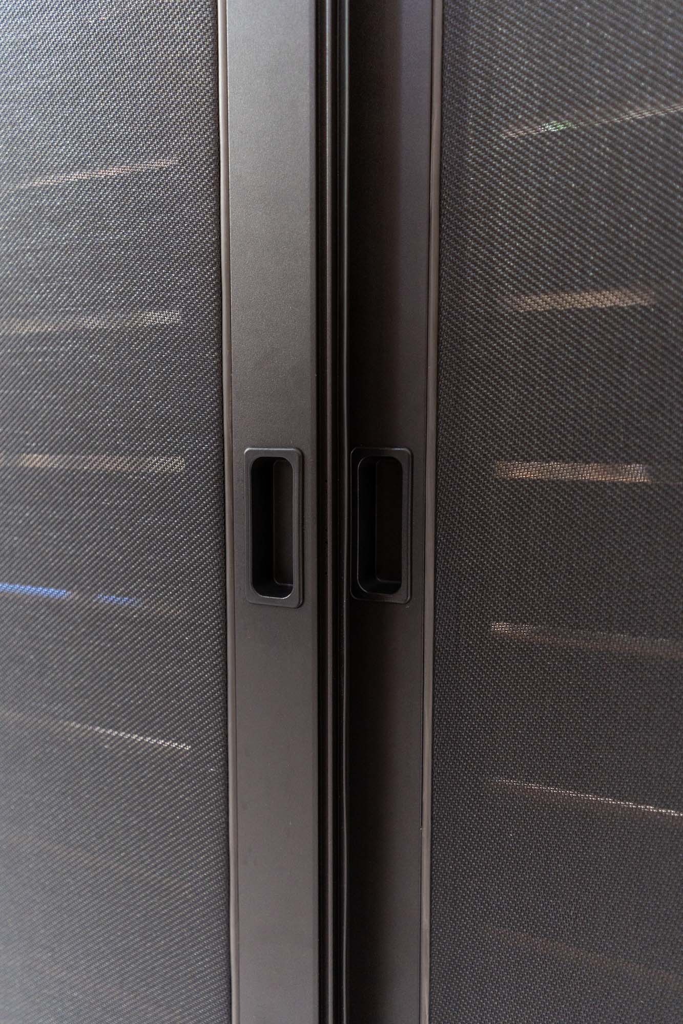 Het schuifpaneel kan optioneel afgewerkt worden met een screendoek. Op deze manier heb je een mooi esthetisch afgewerkt paneel met minder inkijk en worden ook insecten buiten gehouden. Deze screendoek wordt naar de buitenzijde geplaatst.