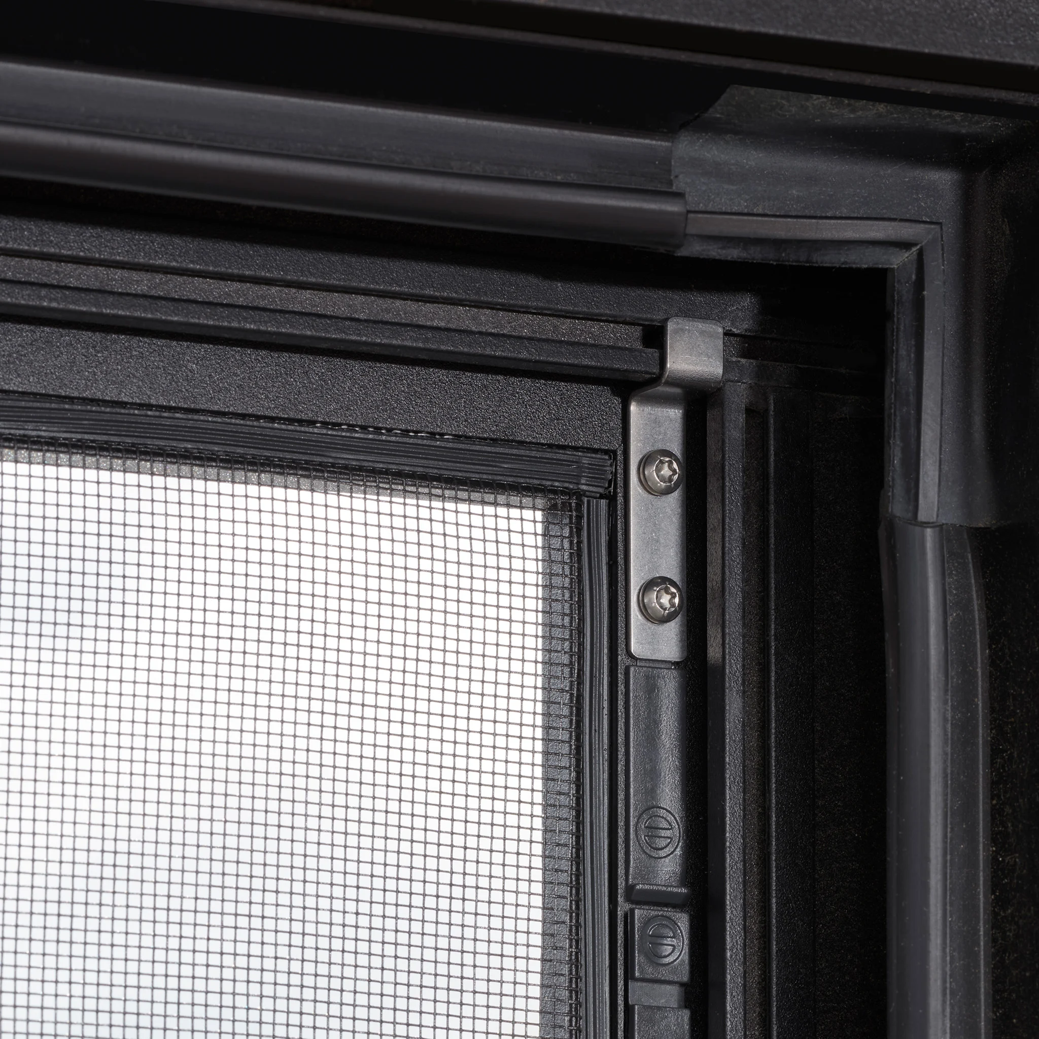 De afwerking van inzethorren is uiterst geavanceerd. Zo wordt voorkomen dat ze kromtrekken, zelfs bij zeer grote ramen. En waait het heel hard? Dan gaan deze horren niet klapperen. Doordat alle onderdelen zijn uitgevoerd in slijtvaste materialen gaat de inzethor jaren mee.