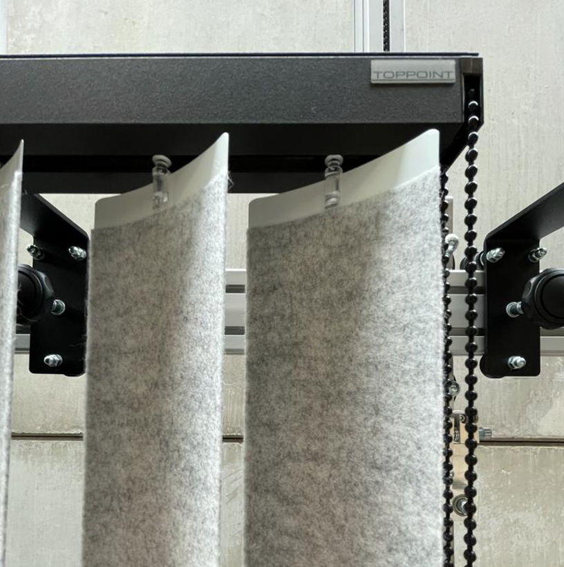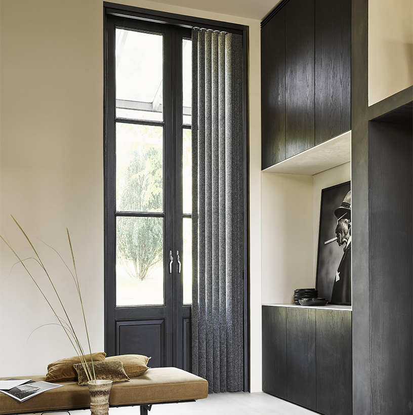 Isolerend, geluiddempend én reflecterend. Hoogwaardige aluminium lamellen met een 100% natuurlijk wollen binnenzijde.