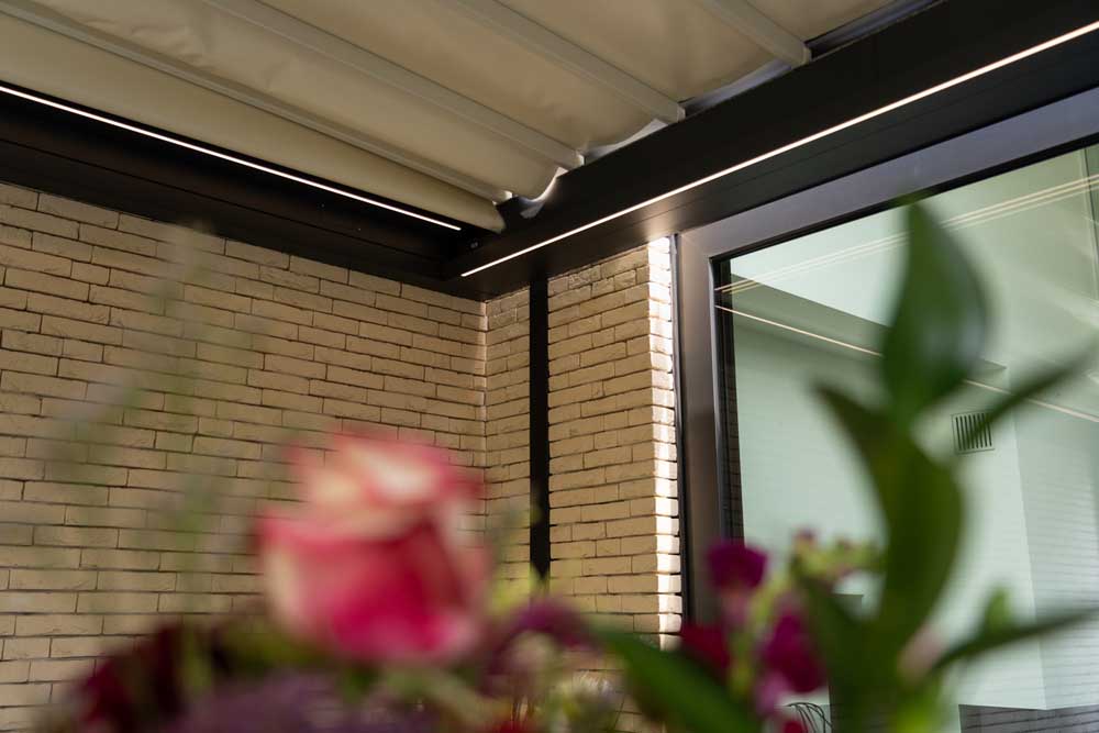 Dankzij de optie verwarming kan je ’s avonds, als het wat frisser wordt, ook zorgeloos genieten van je terras. - Ledverlichting
