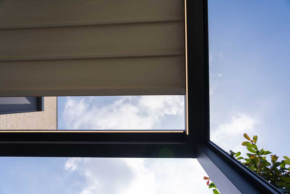 Het horizontale vouwdaksysteem van Nomo laat je genieten van buiten, zelfs bij regen. Slim ontworpen gebogen doekprofielen zorgen voor een elegante afvoer van water. Voeg glazen of houten schuifwanden en ledverlichting toe voor extra comfort.