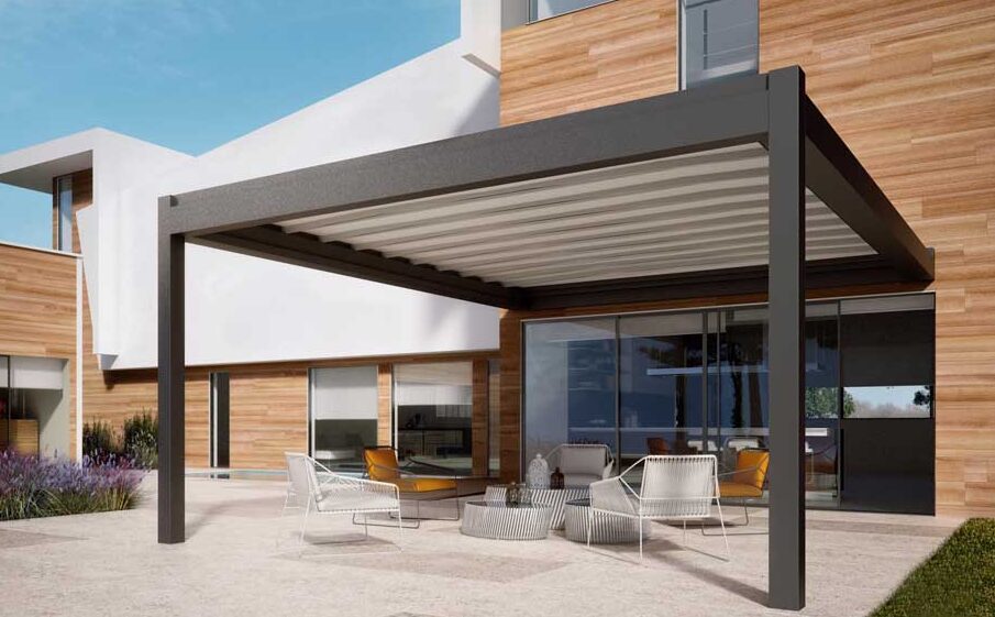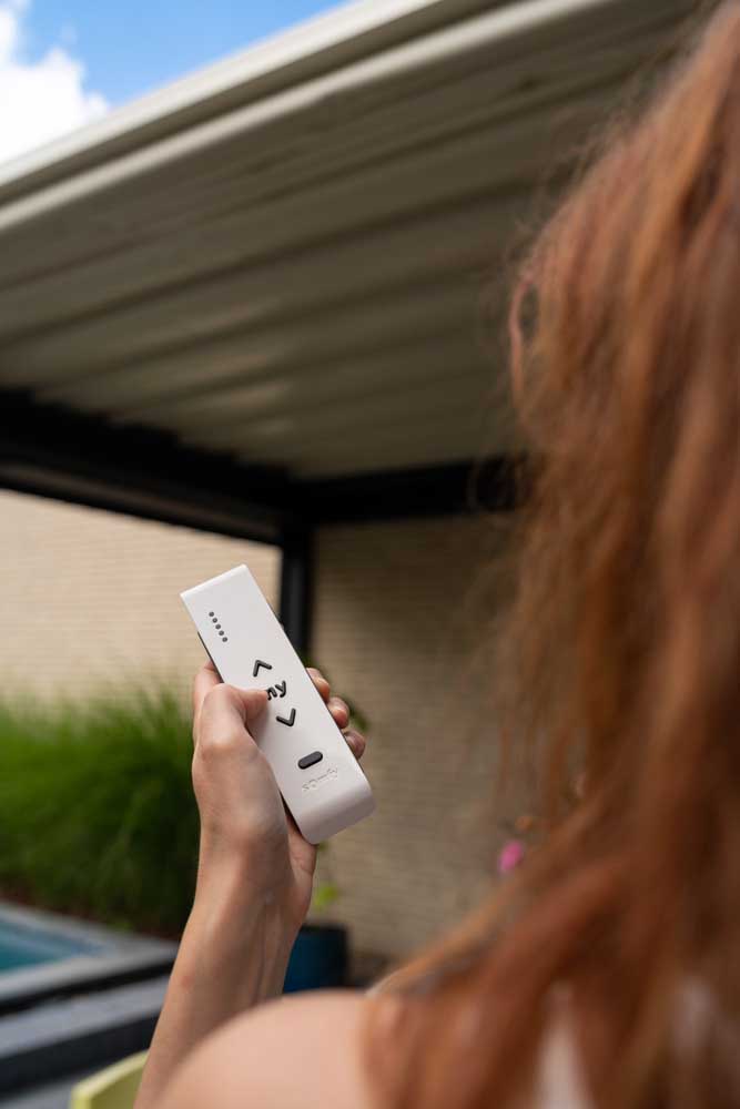 - Aansluitbaar op home domotica via Somfy Tahoma, zo kan je vanop afstand de positie van je terrasoverkapping sturen en opvolgen.