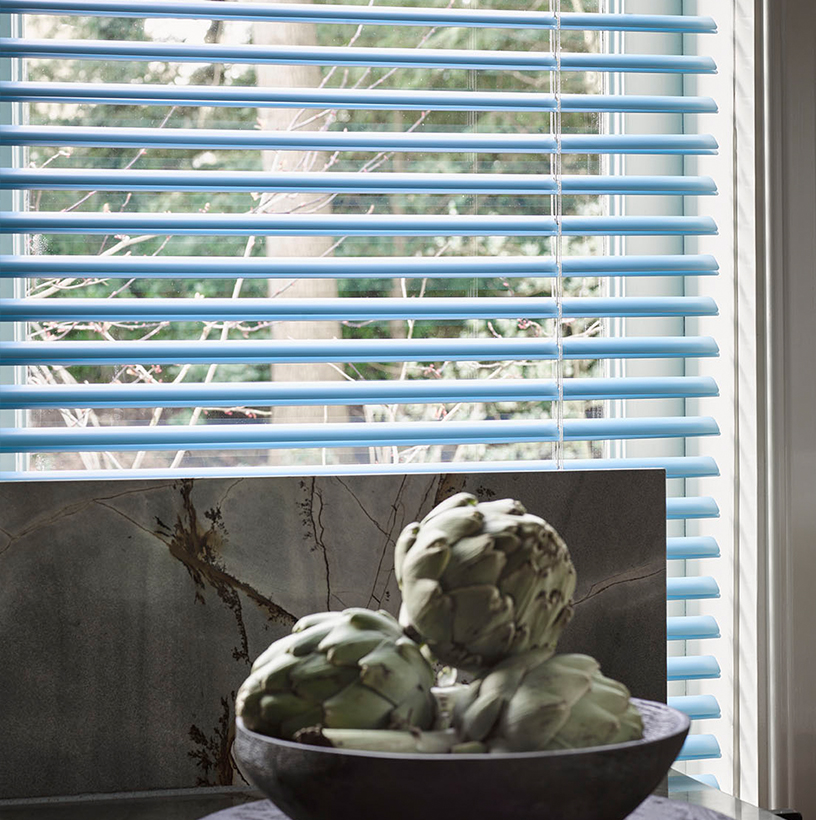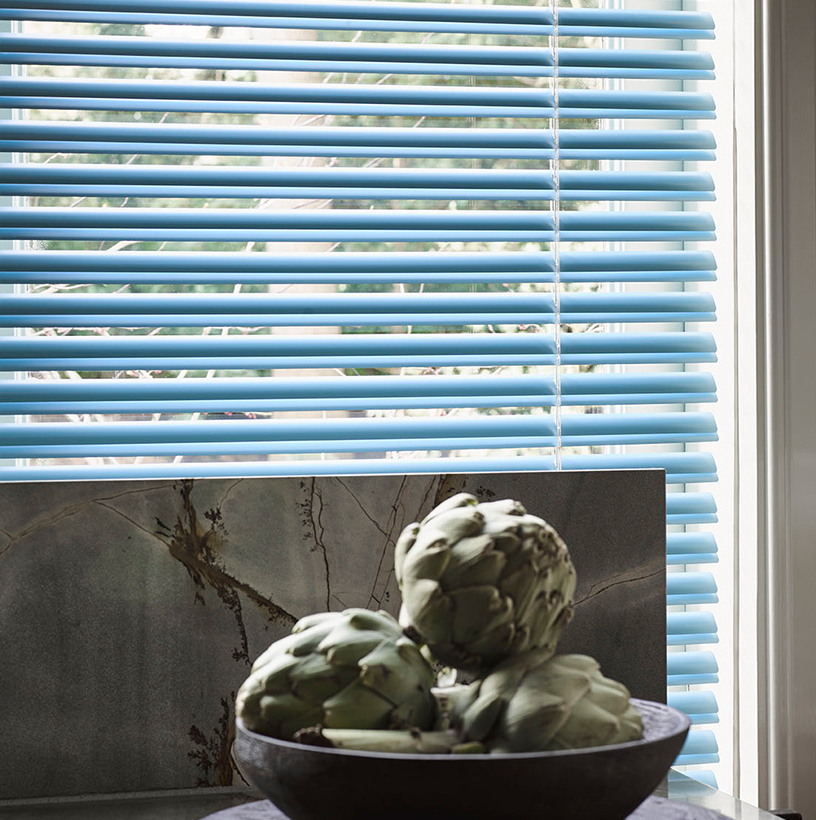 Scala® aluminium jaloezieën met Open View® kunt u kiezen in lamelbreedtes van 25 en 50 mm. Doordat zowel de lamellen als de bovenbak/bovenprofiel vervaardigt zijn van aluminium kun je in elke ruimte, dus ook badkamer en keuken, de Scala® jaloezieën met Open View® voor het raam plaatsen. Maak het uzelf makkelijk en laat het meten en plaatsen maar aan de specialist over. Een afspraak heeft u zo gemaakt.