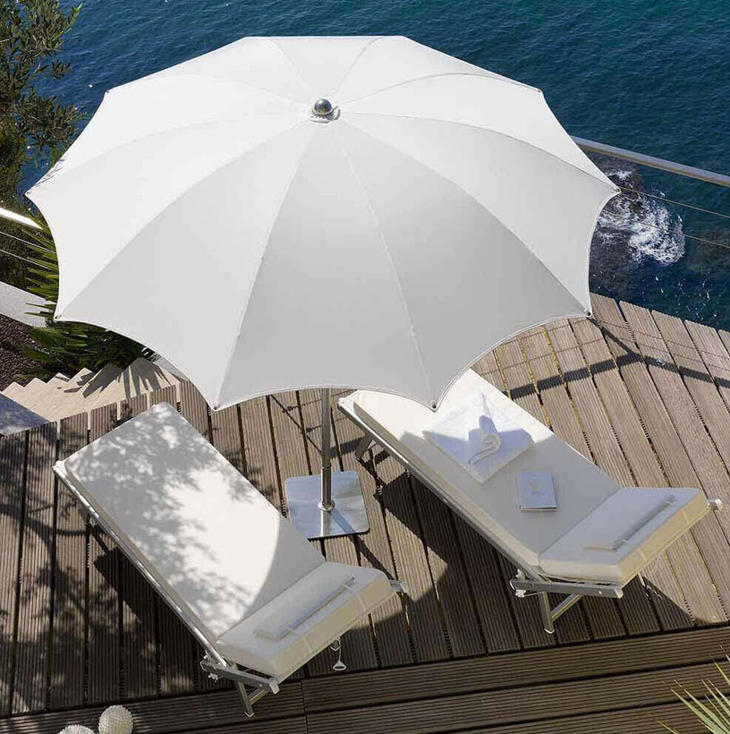 - Het doek en de rand zijn gemaakt van “solution dyed acrylic”, een kleurvaste en UV-bestendige stof voor extra bescherming tegen zonlicht en verkleuring
