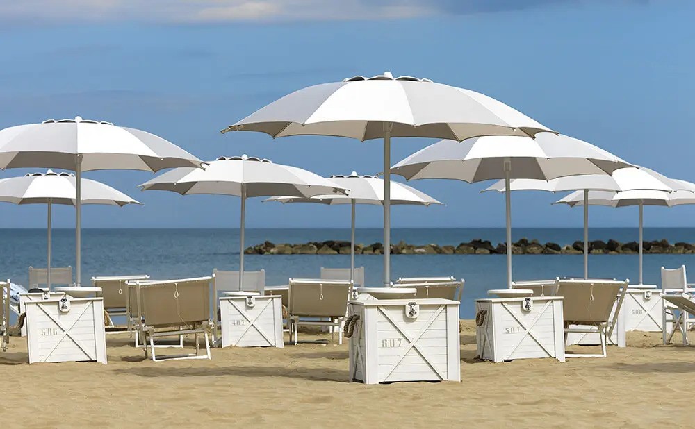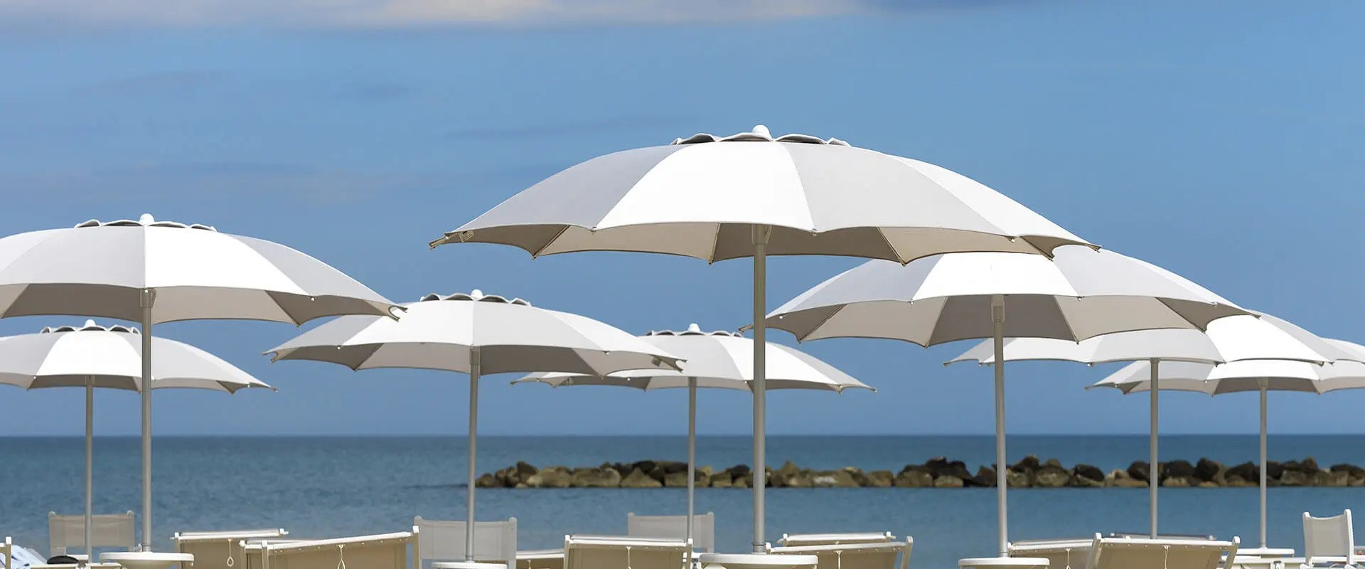 Deze elegante strandparasol zonder volant biedt een strak en modern ontwerp, perfect voor wie op zoek is naar eenvoudige en effectieve zonwering. Dankzij de robuuste constructie en duurzame materialen is deze parasol ideaal voor langdurig gebruik op het strand, in de tuin of op het terras.