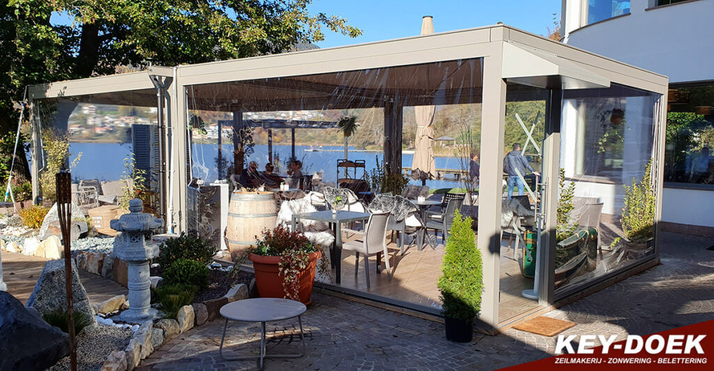 Branding kan worden toegepast op alle daken, volantjes en zijwanden van de veranda, wat het een perfecte keuze maakt voor zowel privégebruik als commerciële toepassingen.
