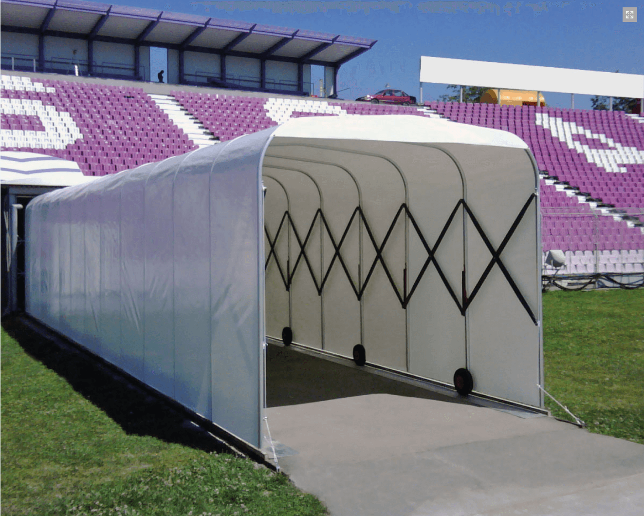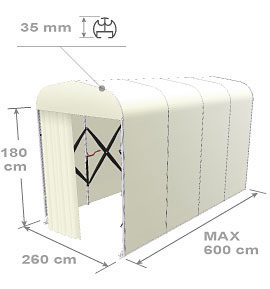 - De tunnel heeft schuifbare voor- en achterwand. Het is een directe oplossing als verplaatsbare garage of als afscherming van materiaal of goederen.