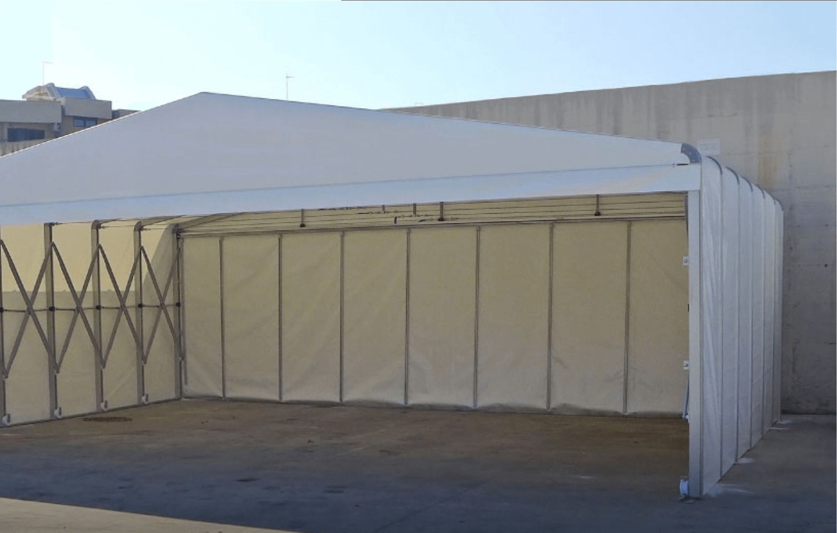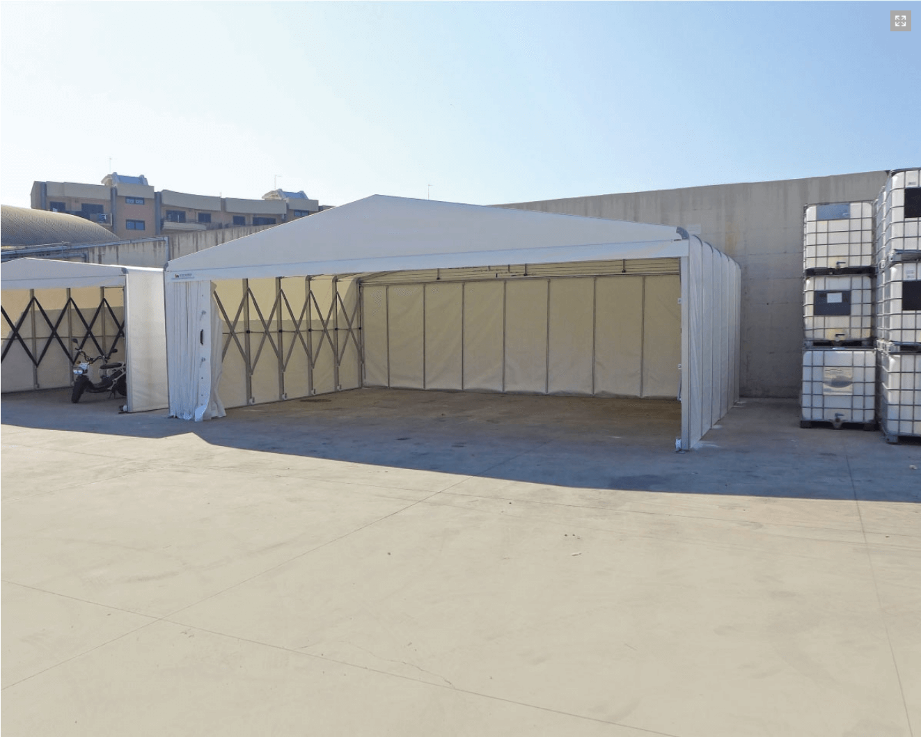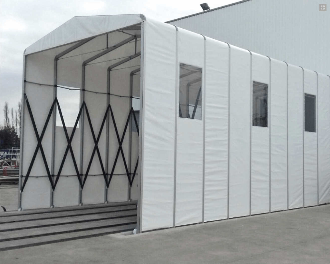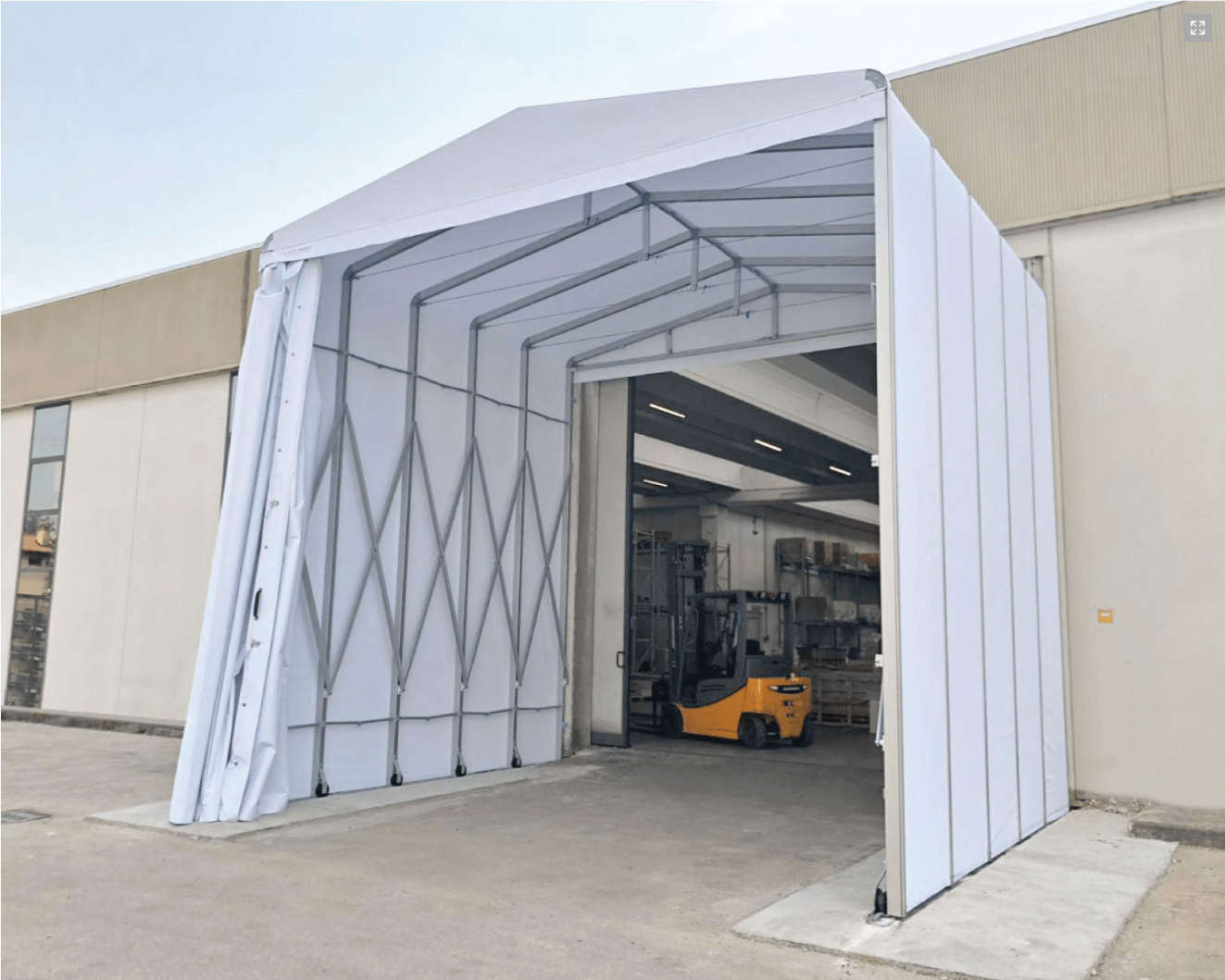 De Ready Box 4 is een intrekbare harmonicatunnel die uitblinkt in veelzijdigheid en gebruiksgemak. Deze uitschuifbare tunnel is ideaal als tijdelijke opslagplaats, overkapping voor machines of zelfs als praktische schuur.