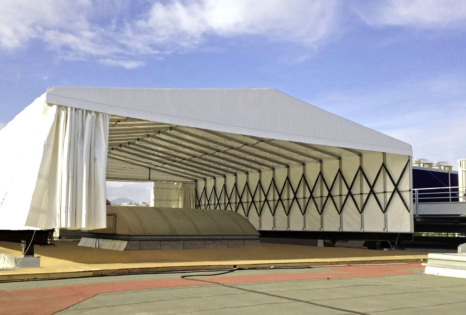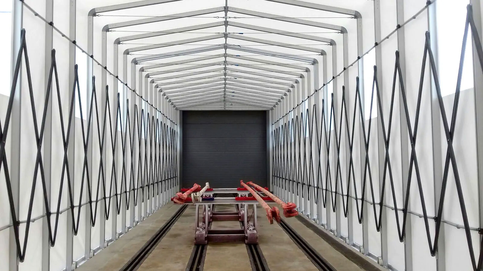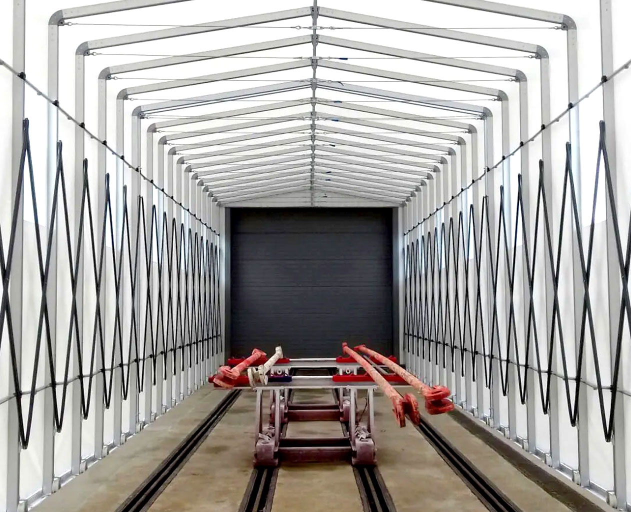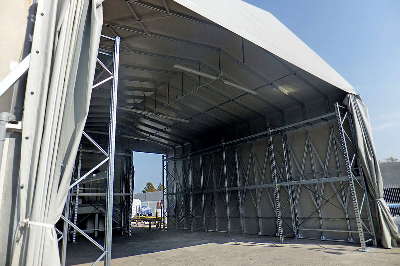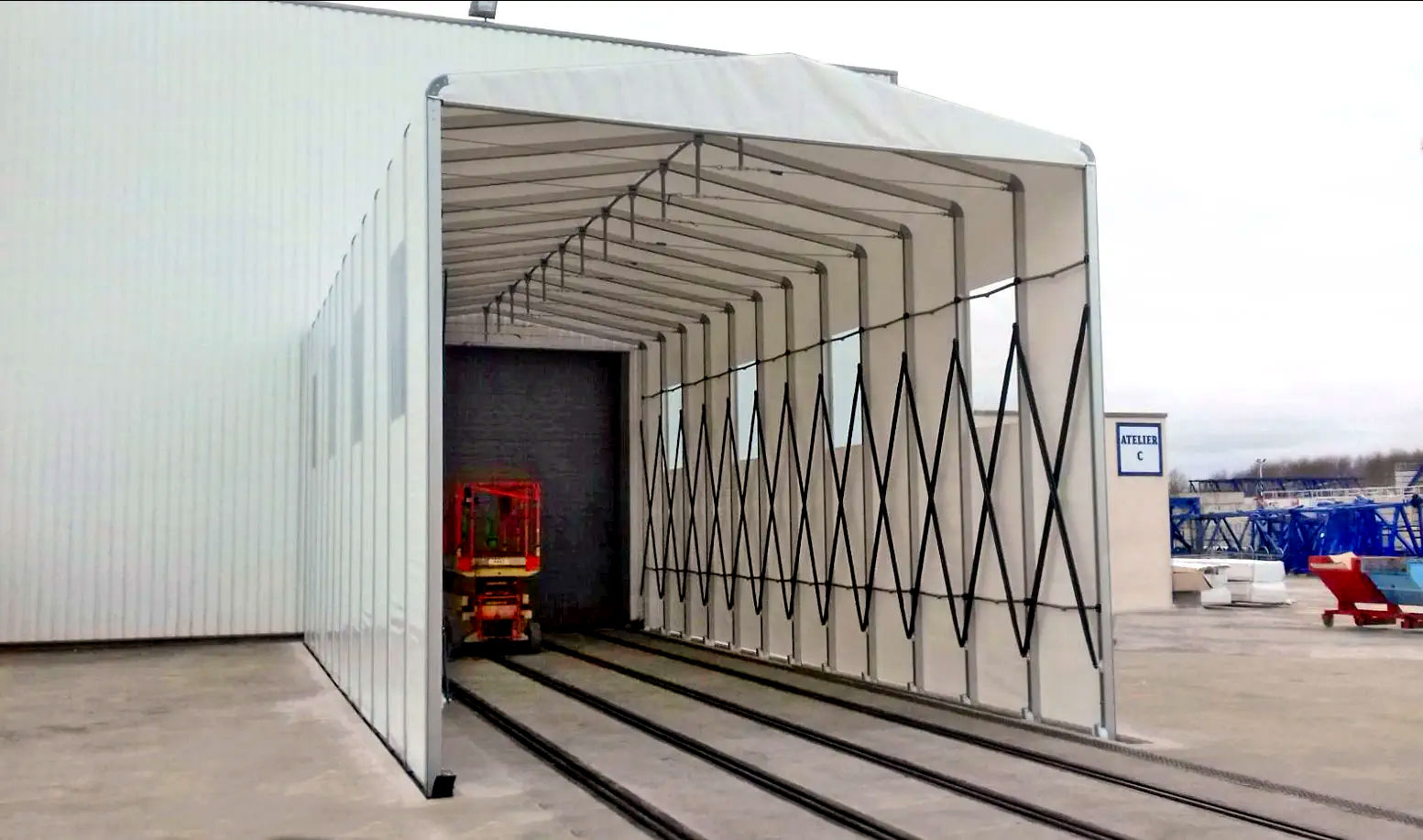 De Ready Box 4 is een intrekbare harmonicatunnel die uitblinkt in veelzijdigheid en gebruiksgemak. Deze uitschuifbare tunnel is ideaal als tijdelijke opslagplaats, overkapping voor machines of zelfs als praktische schuur.