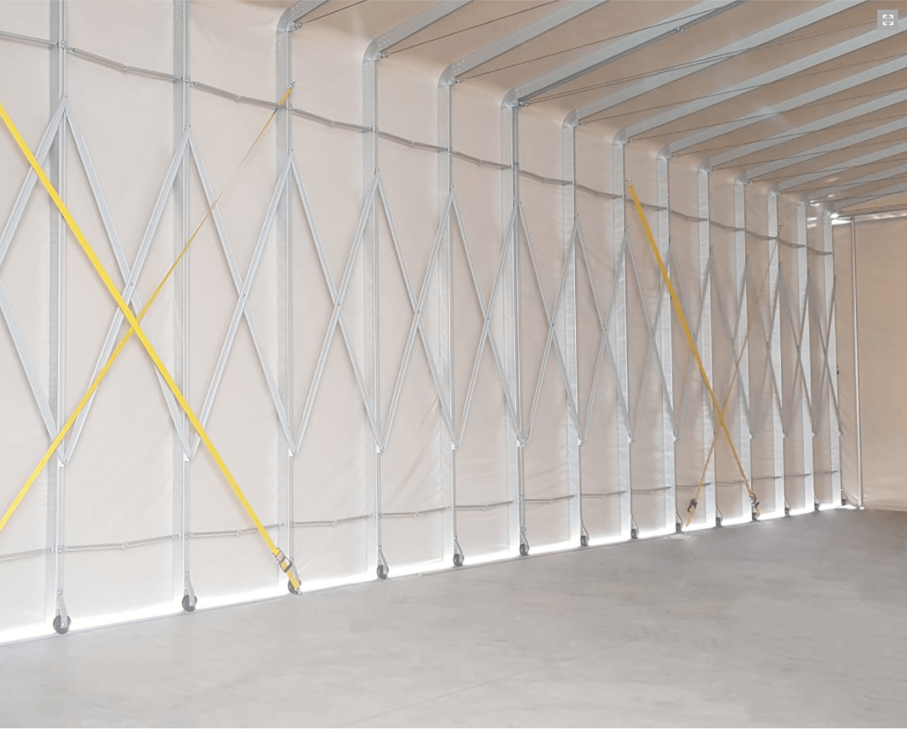 De Ready Box 6 is een intrekbaar daksysteem van aluminium dat speciaal is ontwikkeld voor grotere industriële toepassingen. Deze robuuste harmonicatunnel combineert duurzaamheid, mobiliteit en gebruiksgemak met een indrukwekkende afmeting van maximaal 15 meter breed en een nokhoogte tot 5 meter. Daarmee biedt de Ready Box 6 de perfecte oplossing voor magazijnen, productiehallen en logistieke werkruimtes.