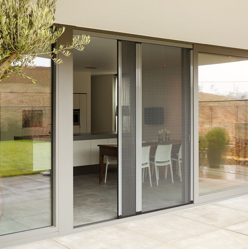 Heeft u een grote schuifpui of andere grote deuropeningen? Dan is de Toppoint schuifhordeur een goede oplossing. Standaard kunnen we de schuifhordeur van 50 tot 320 cm breed en tussen 80 en 300 cm hoog leveren. Als uw deuropening breder dan 2 meter is, laten we de twee deuren naar elkaar toe sluiten. Ook de Toppoint schuifhordeur laat zich naar jouw wensen aanpassen. Het frame is er standaard in 5 RAL kleuren maar leverbaar in de RAL kleur van uw keuze. U kunt op onze vakmensen rekenen voor het meten en plaatsen van uw horren. Ze geven u graag advies over de beste insectenwering voor jouw deuren!