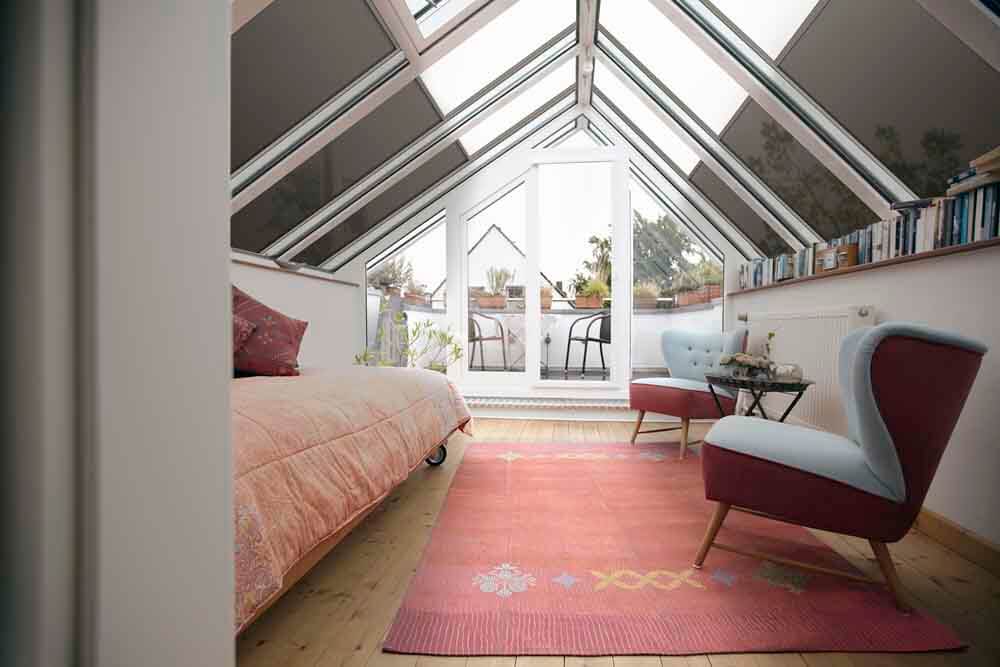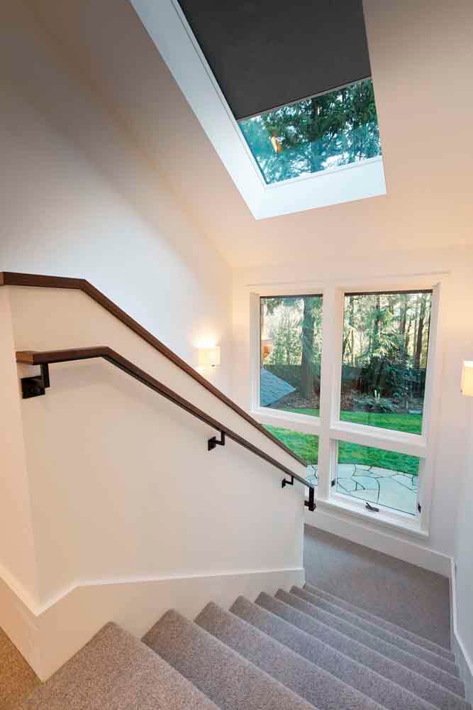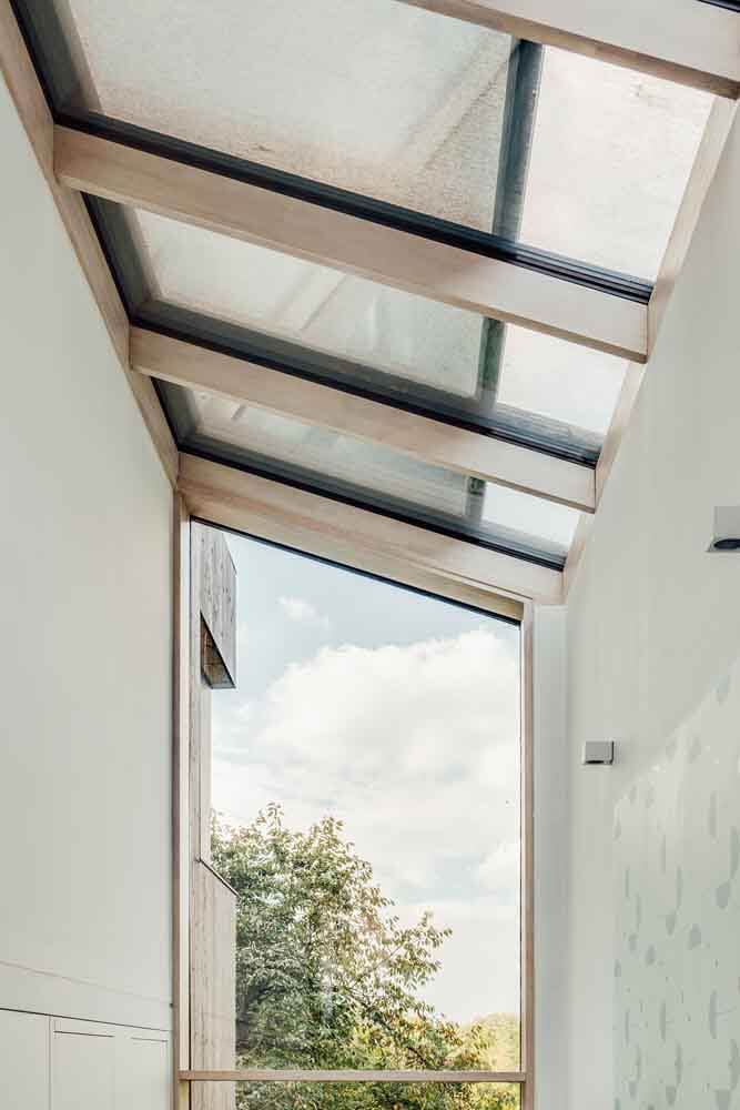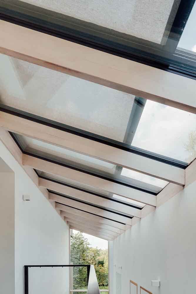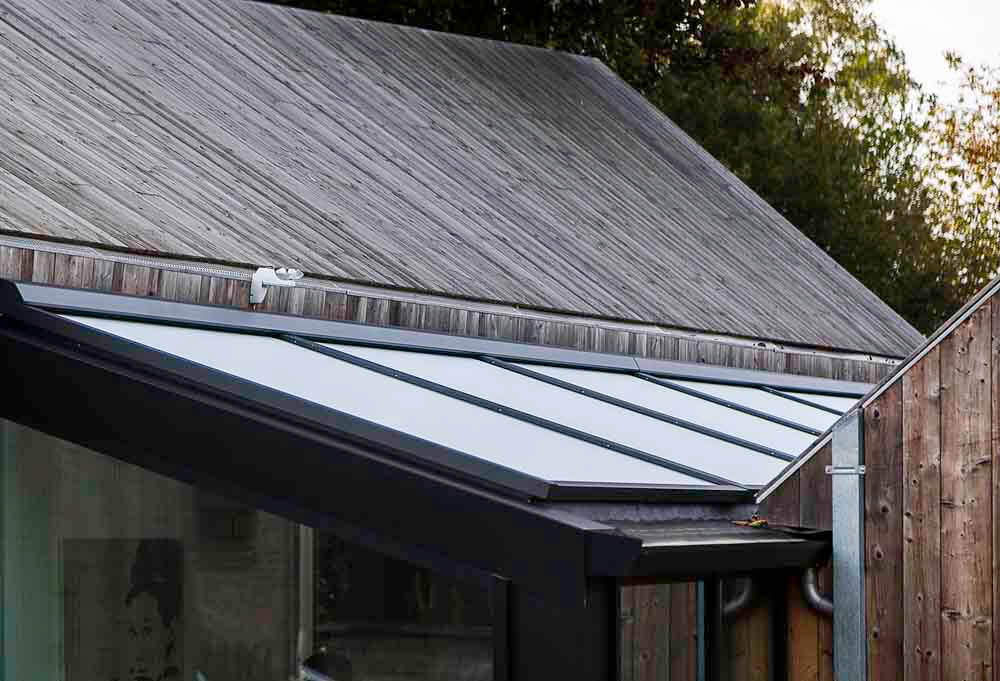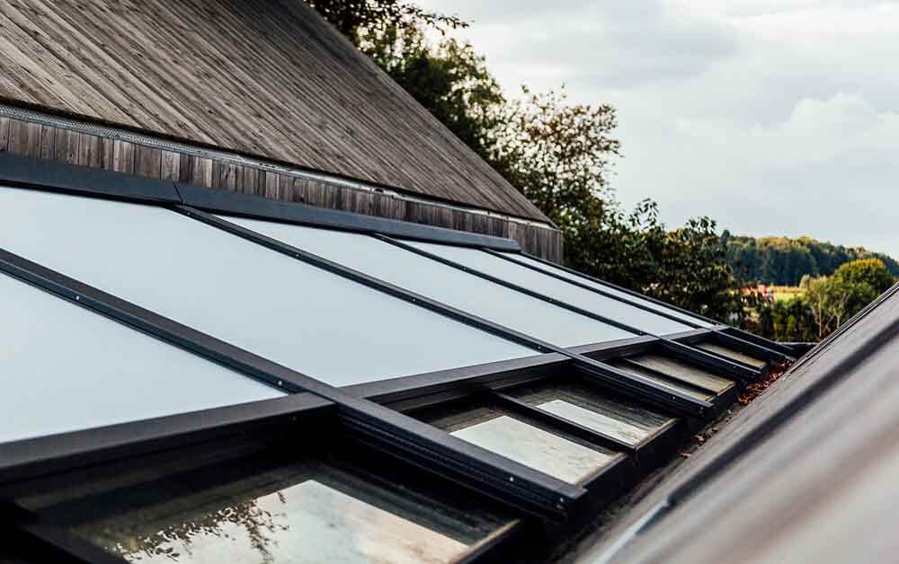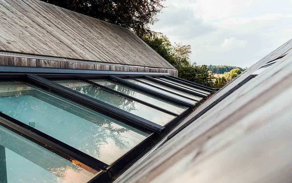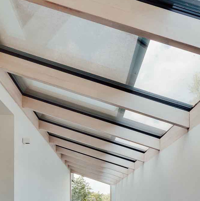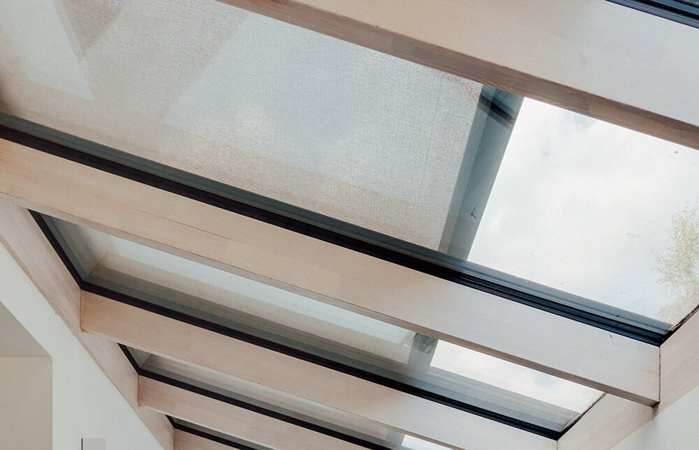 Een optionele oversteek zorgt voor minder zonlicht op verticale glaspartijen.