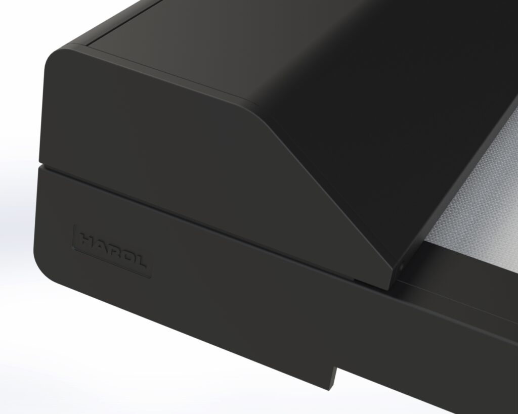 Verken de VZ800-ZIP met zijn gesloten, compacte kast (245 x 175 mm) die het doek langdurig laat stralen. Geschikt voor grote glaspartijen, bedekt het een maximaal oppervlak van 25m².